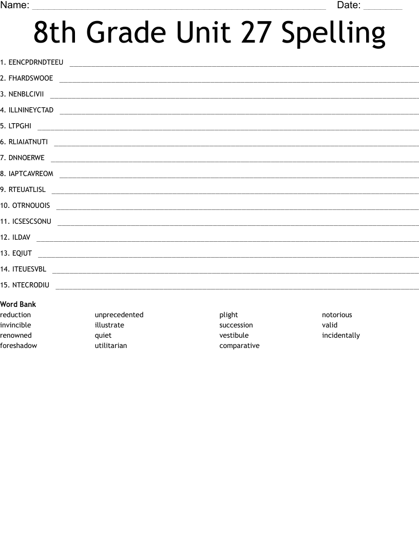 8th Grade Unit 27 Spelling Word Scramble WordMint