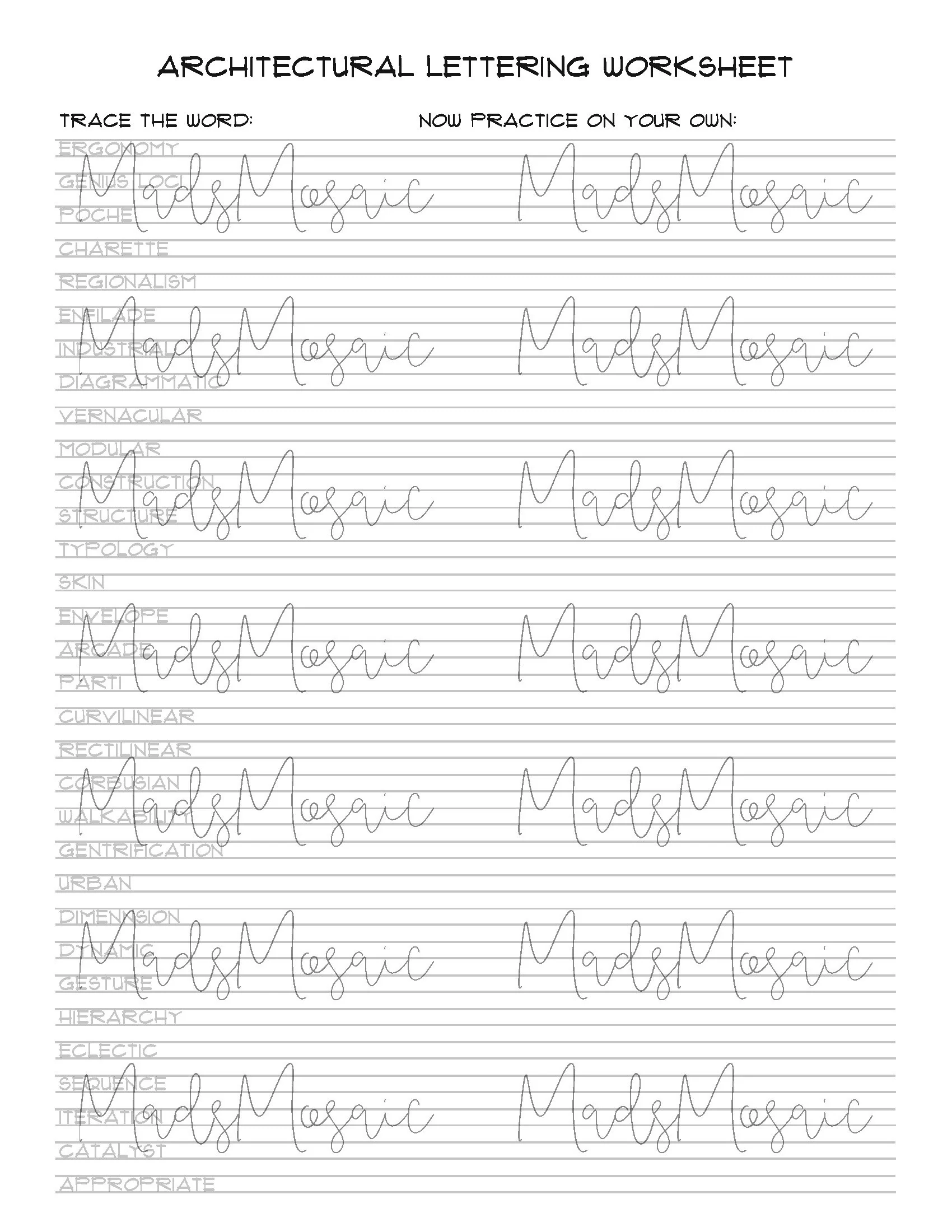 Architect Handwriting Worksheets Lettering Practice printable PDF Etsy