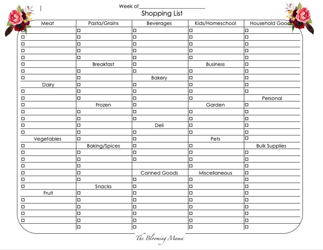 Grocery And Shopping List Digital Printable Download Etsy
