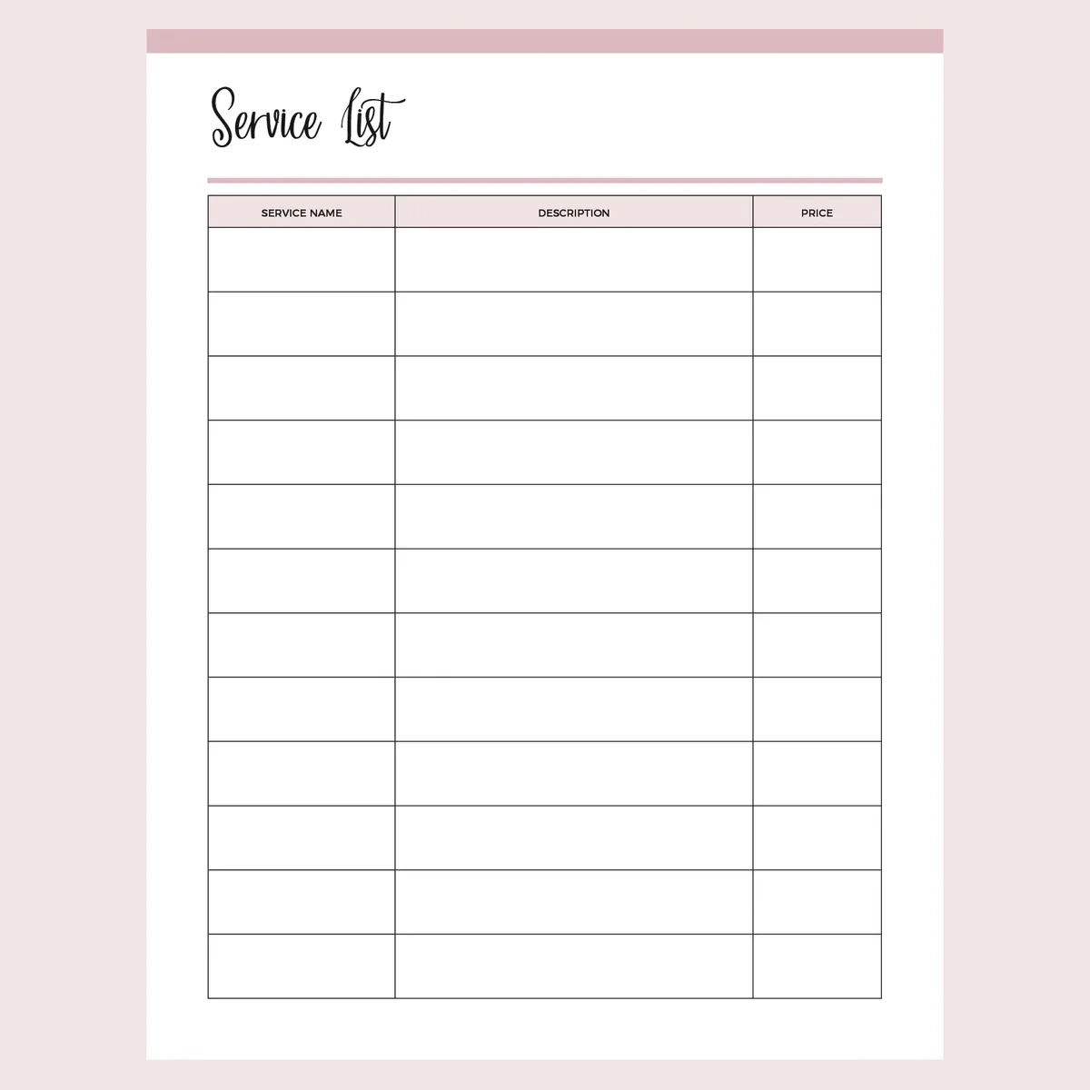 Printable Business Service Price List Instant Download PDF A4 And US Letter Plan Print Land