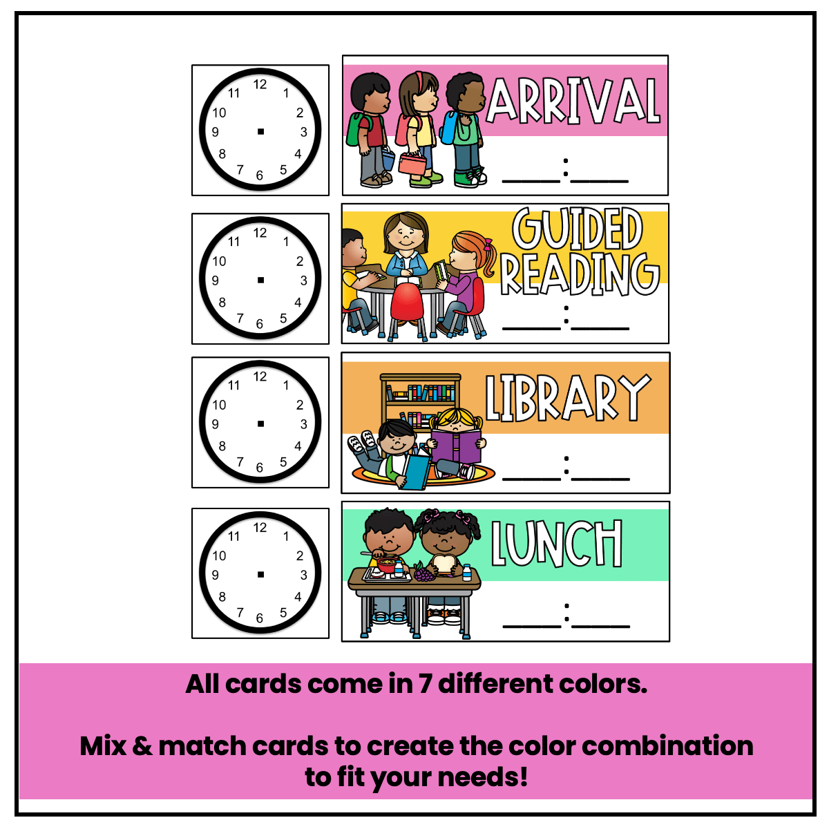 Daily Visual Schedule Cards W Digital And Analog Clocks Rainbow