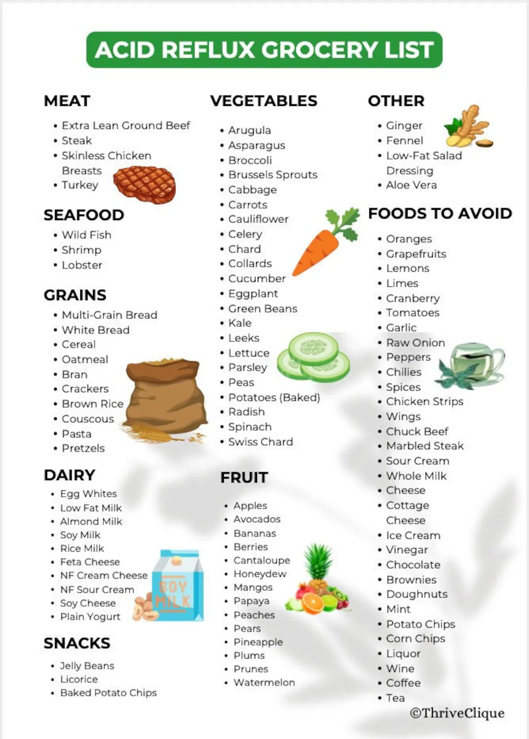 Acid Reflux Grocery List Digital Printable LearningHealthCo