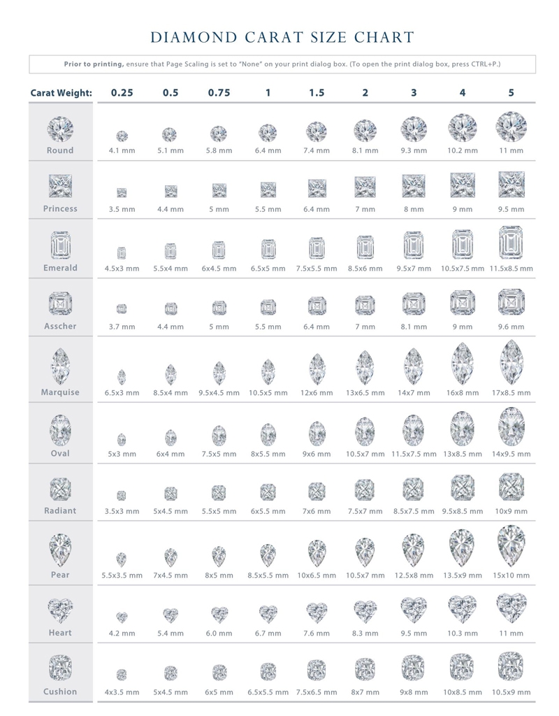 16 Printable Diamond Carat Size Charts