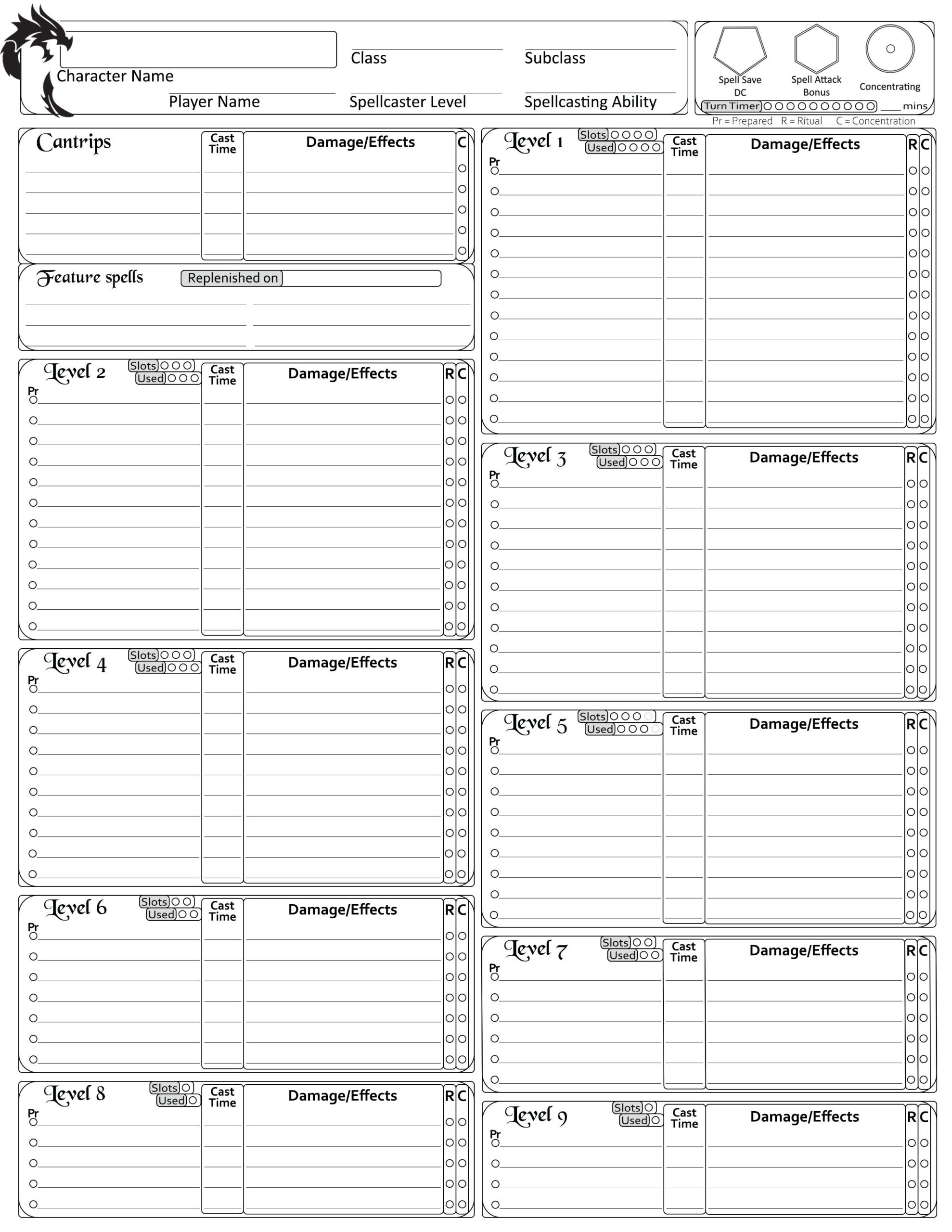 Complete Spell Sheet 5e A Fillable Pdf Spell Sheet With Concentration And Ritual Markers OC R DnD