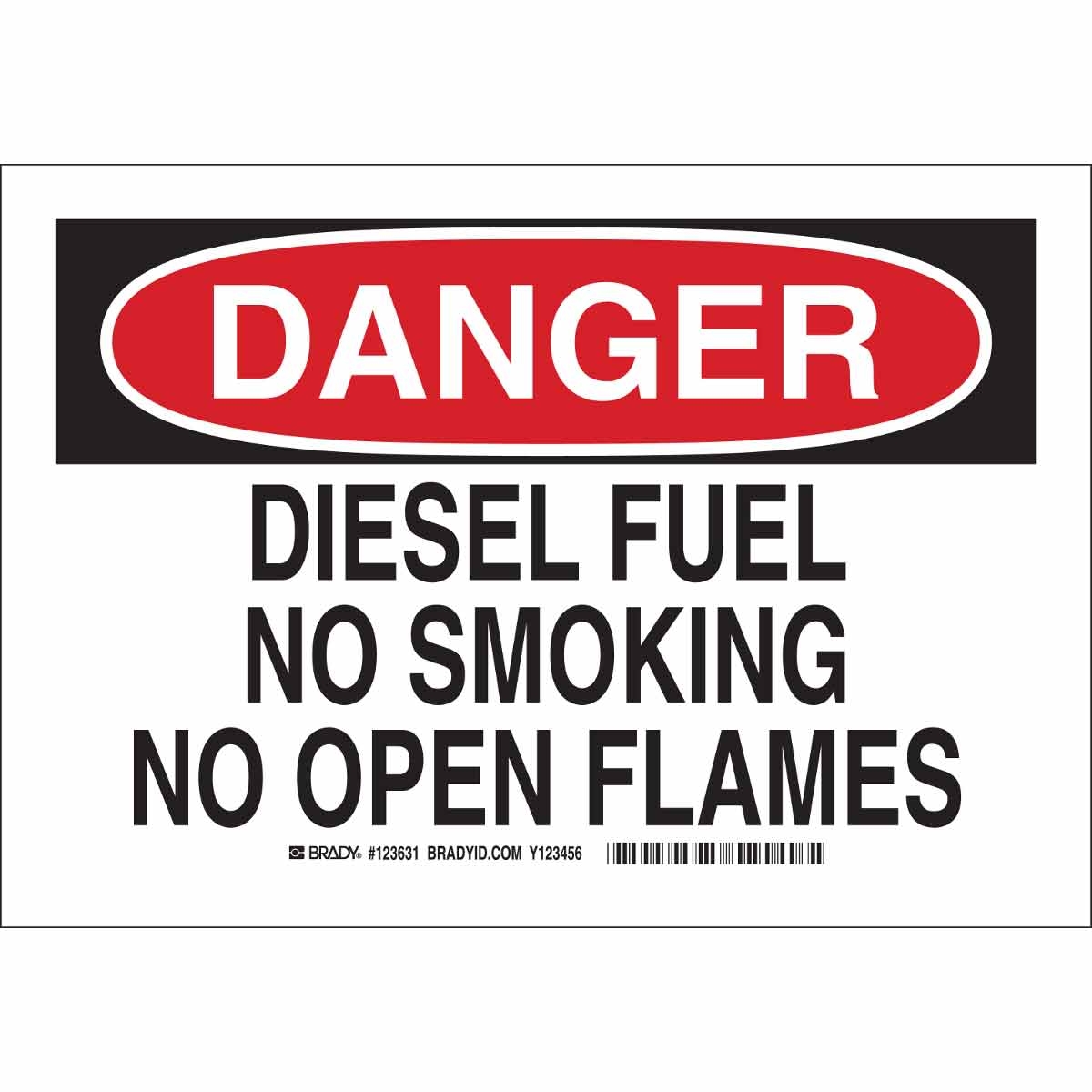 Brady Part 123632 DANGER Diesel Fuel No Smoking No Open Flames Sign BradyID