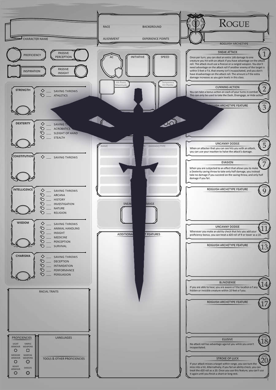 Printable Dnd Character Sheet 5e Rogue