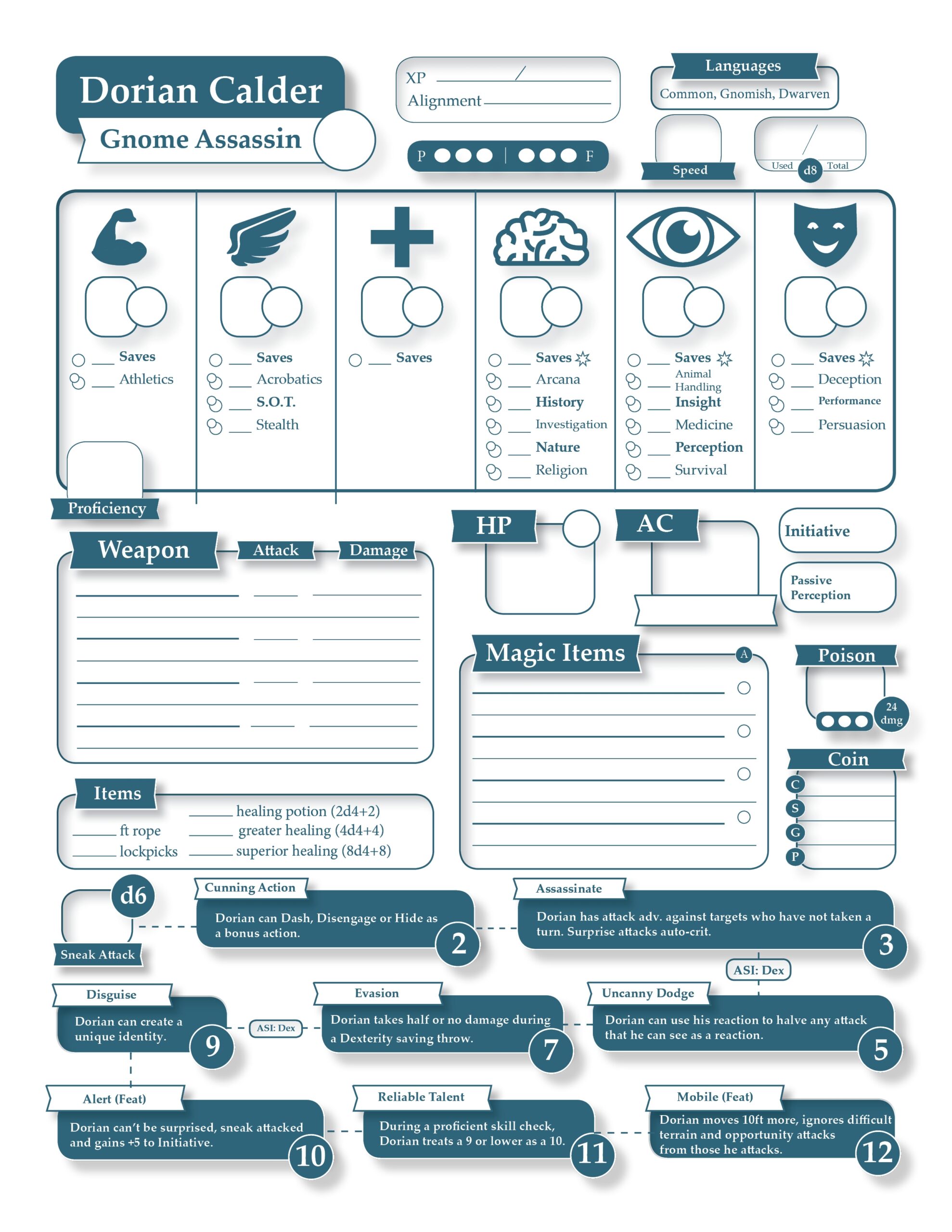 OC Made A very Custom Character Sheet For My Rogue Still Tinkering Feedback Welcome R DnD