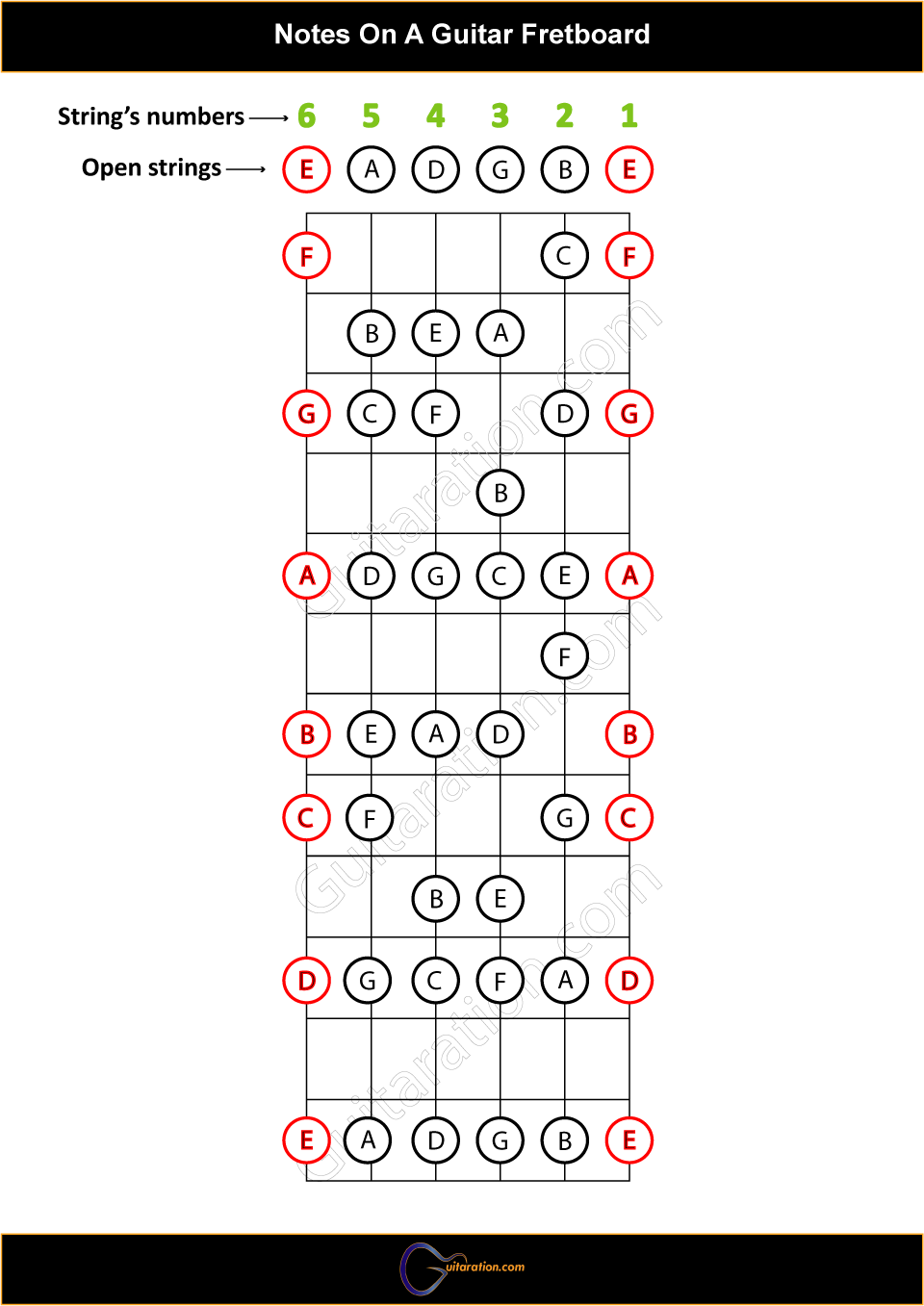 Guitar Fretboard Map PDF With Natural Notes In Open G Tuning