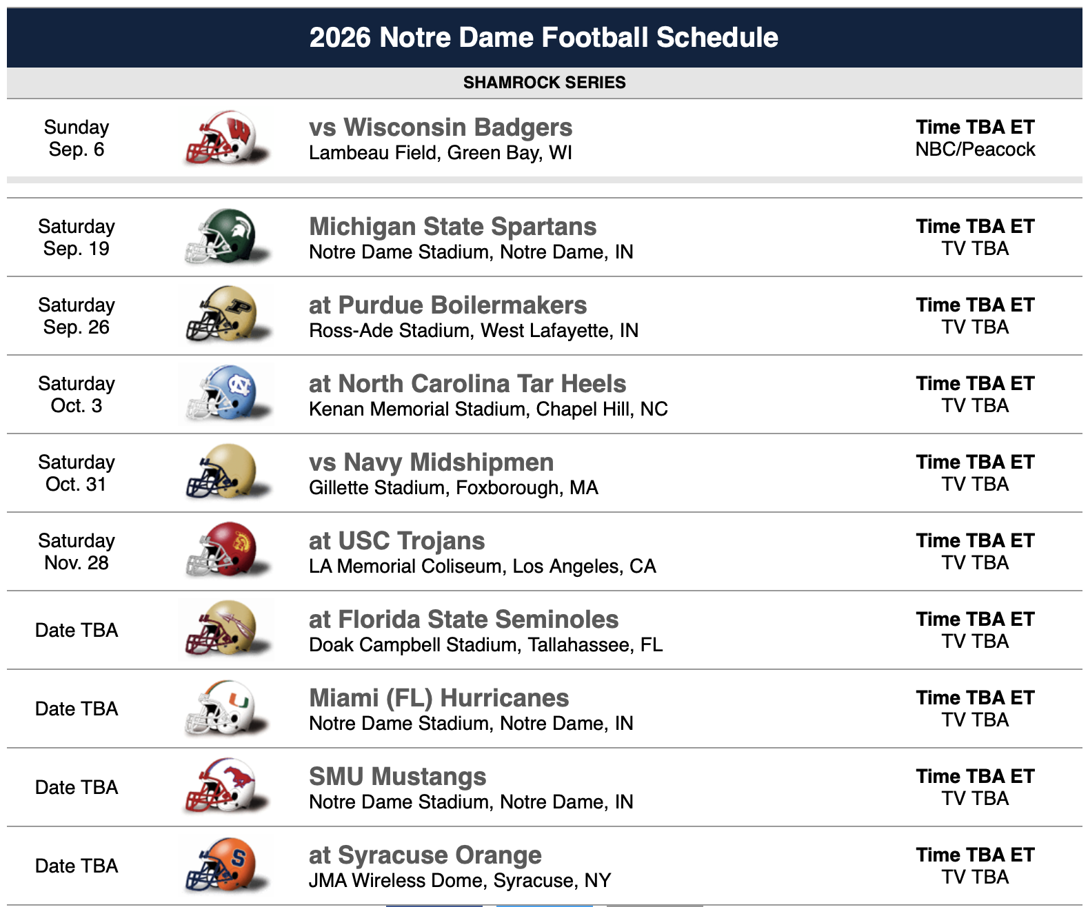 Notre Dame Football Irish Schedule Rice Owls For 2026 Home Game One Foot Down