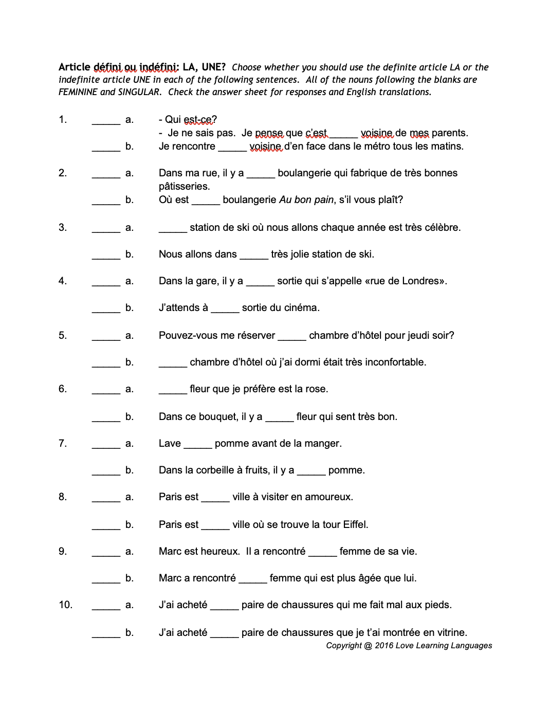 Printable French To English Grammar Sheets