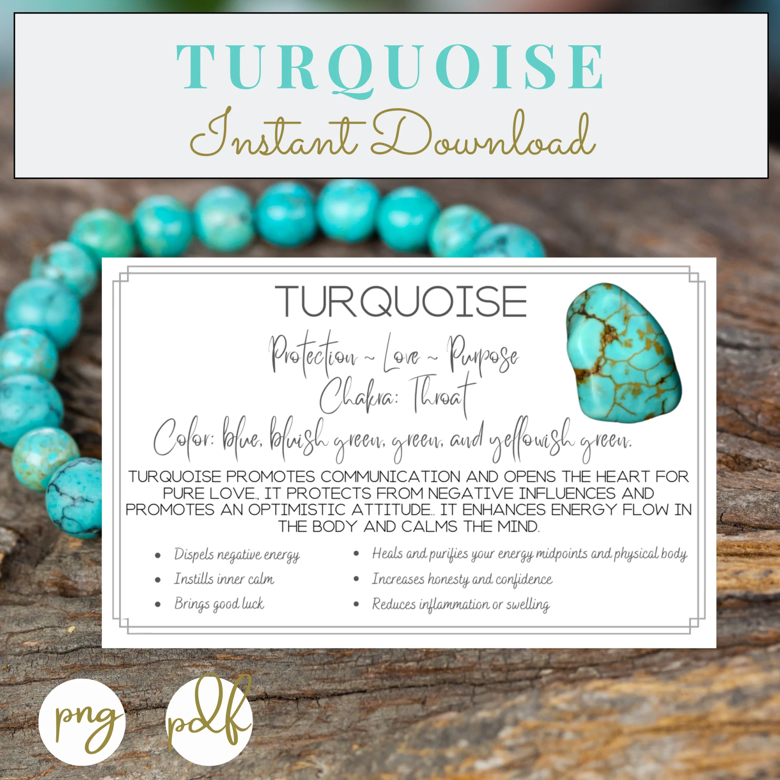 Turquoise Printable Cards Crystal Stone Meaning Properties Benefits Instant Download Crystals Etsy