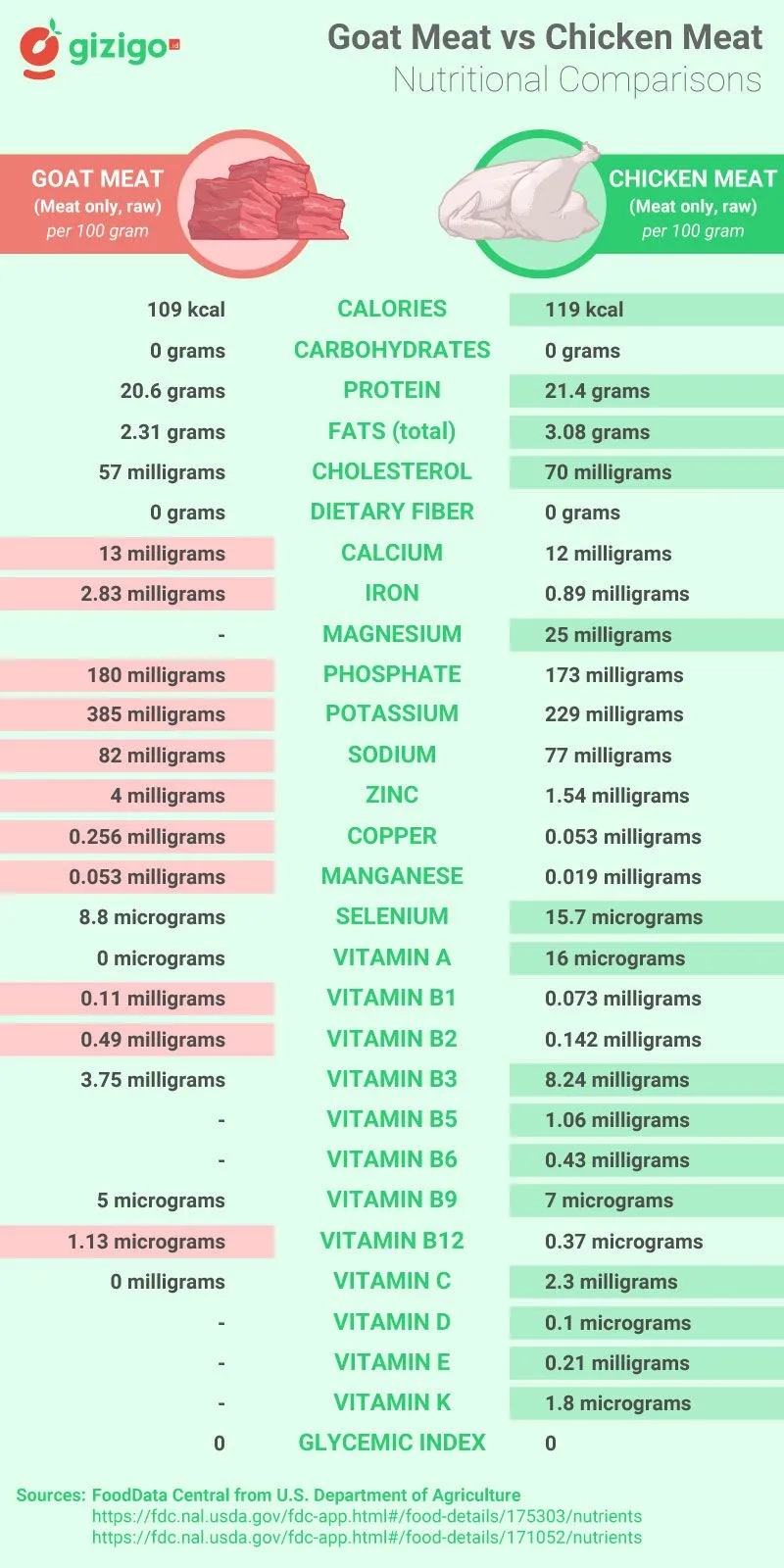 Goat Meat Vs Chicken Nutrition Chart Calories Carbs Vitamins
