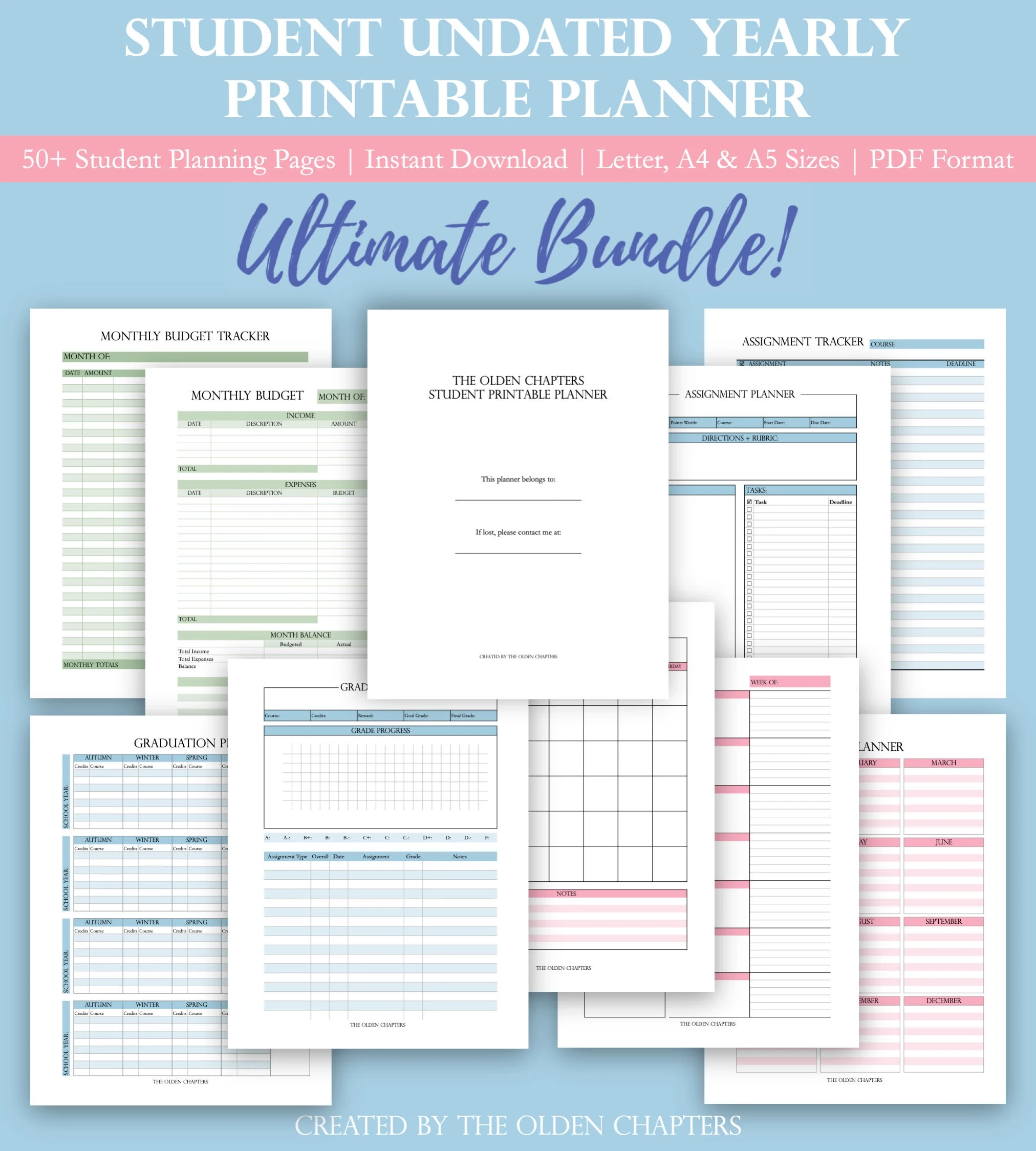 Student Printable Planner Undated College Student Planner Academic High School Agenda Printable Planner Kit A5 Printable Planner Etsy