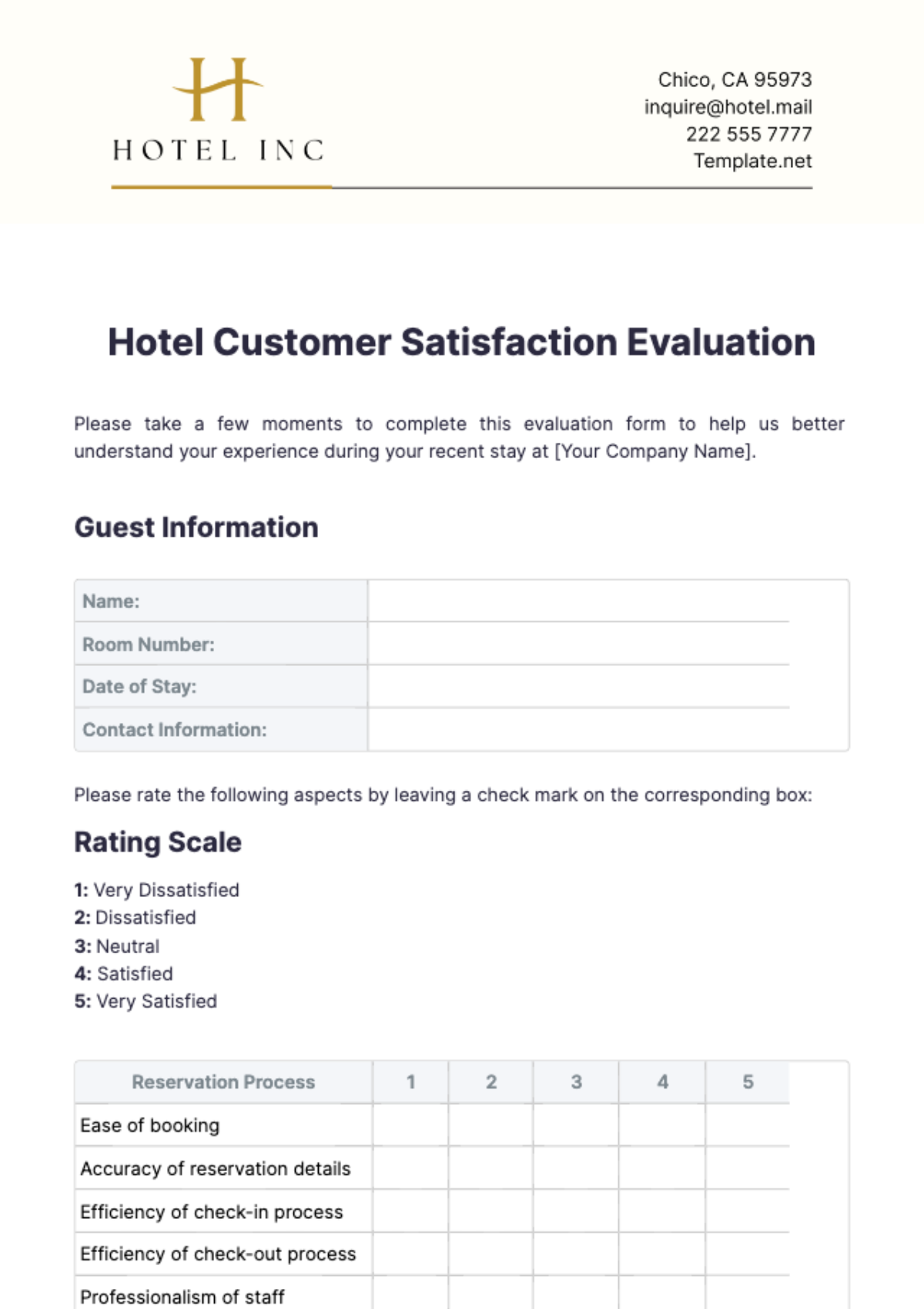 Free Hotel Customer Satisfaction Evaluation Template To Edit Online