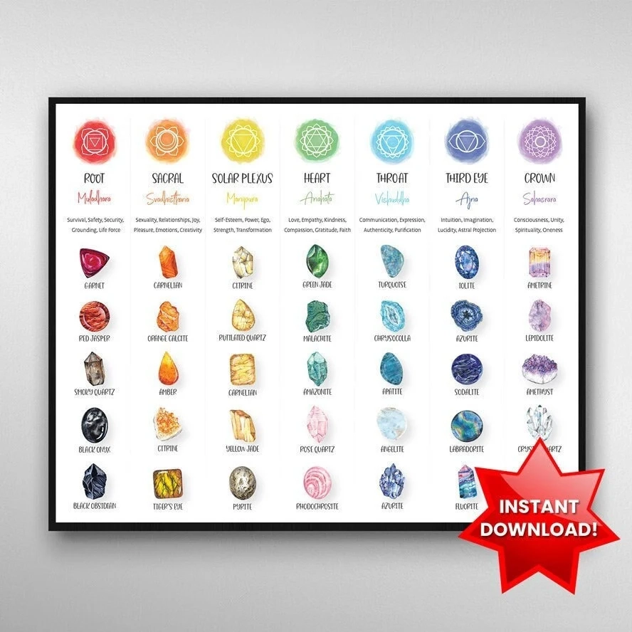 Chakra Stones Crystals Chart I Instant Download Spiritual Decor Chakra Wall Hanging Chakra Decor Spiritual Gift Chakra Wall Art Etsy