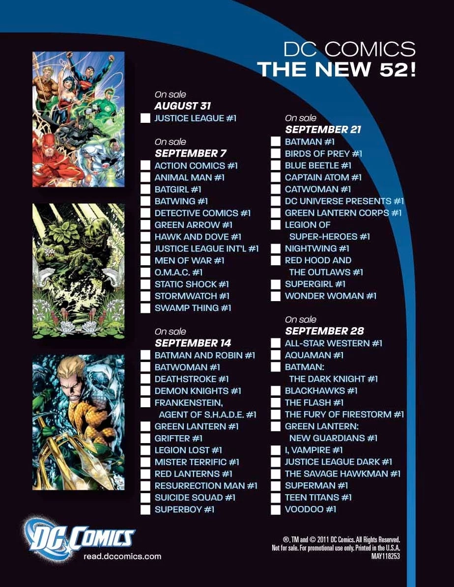 DC Comics The New 52 Shipping Checklist