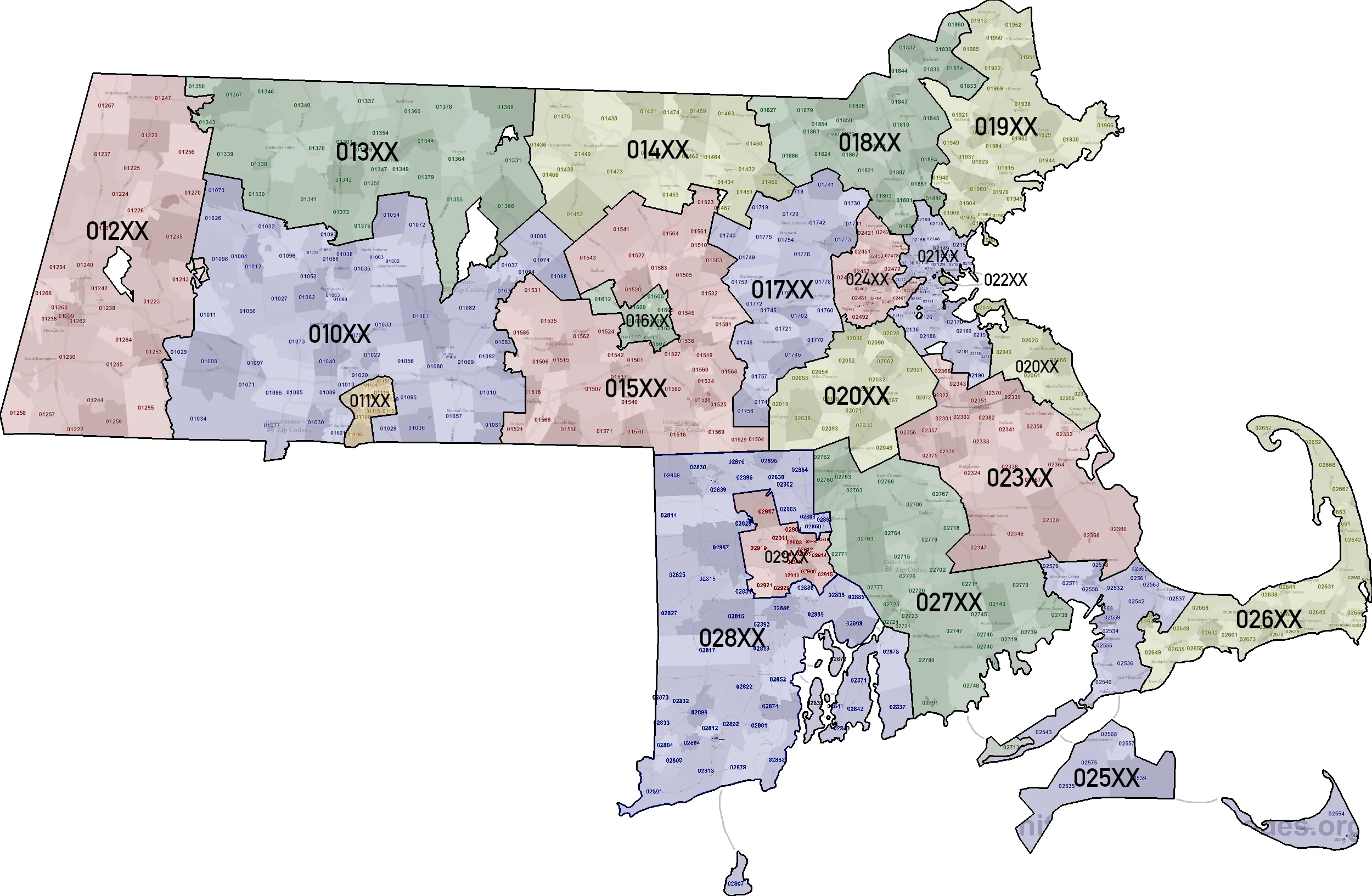 I Made A Map Showcasing The Zip Code Groupings In Massachusetts And Rhode Island R massachusetts