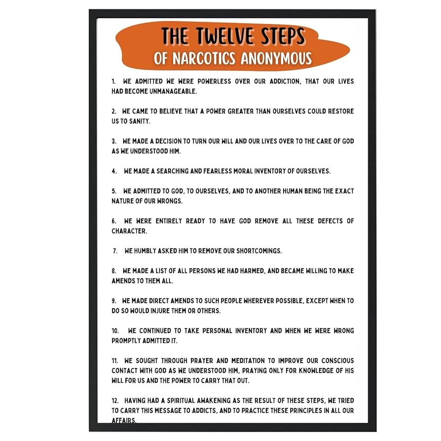 Amazon The 12 Steps Of NA Narcotics Anonymous Poster For Addiction Recovery Twelve Steps Narcotics Anonymous Quotes Print NA Daily Reflections Poster 12 Step Working Guide 11×17 In LAMINATED
