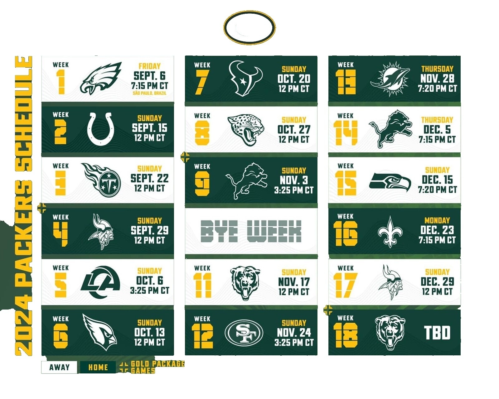 Printable Packers 2026 Schedule Gold Package