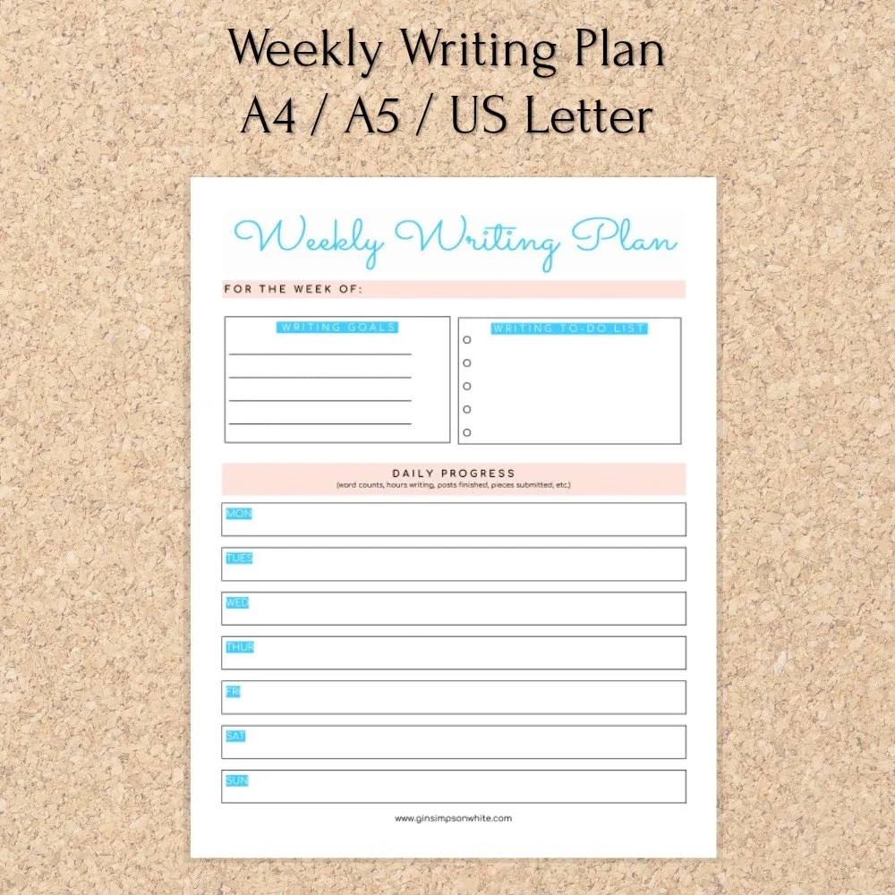 Printable free Weekly Writing Plan Ginger Simpson White