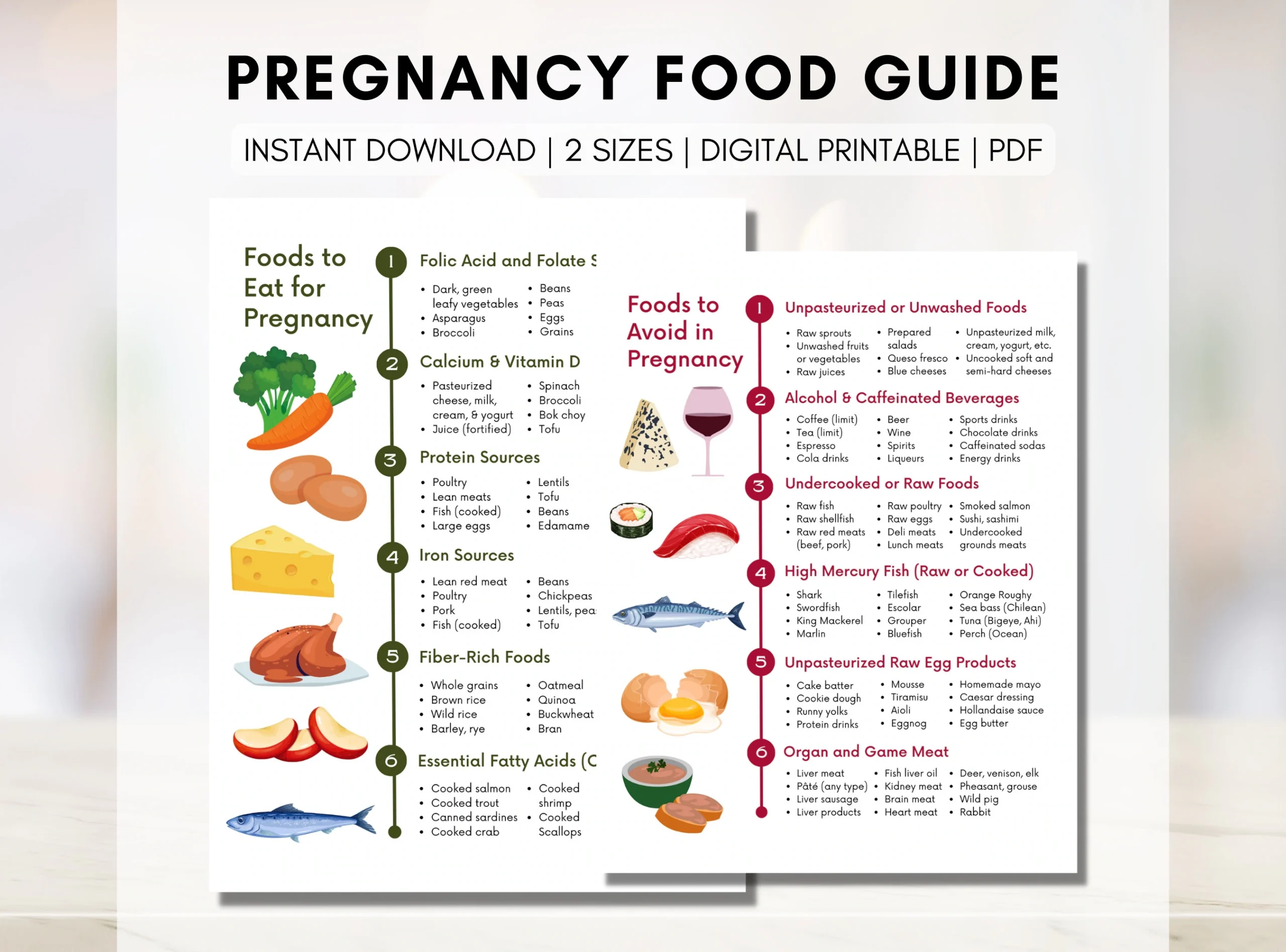 Pregnancy Food Guide Pregnancy Nutrition List Recommended Foods Foods To Avoid In Pregnancy Quick Guide digital Printable Etsy
