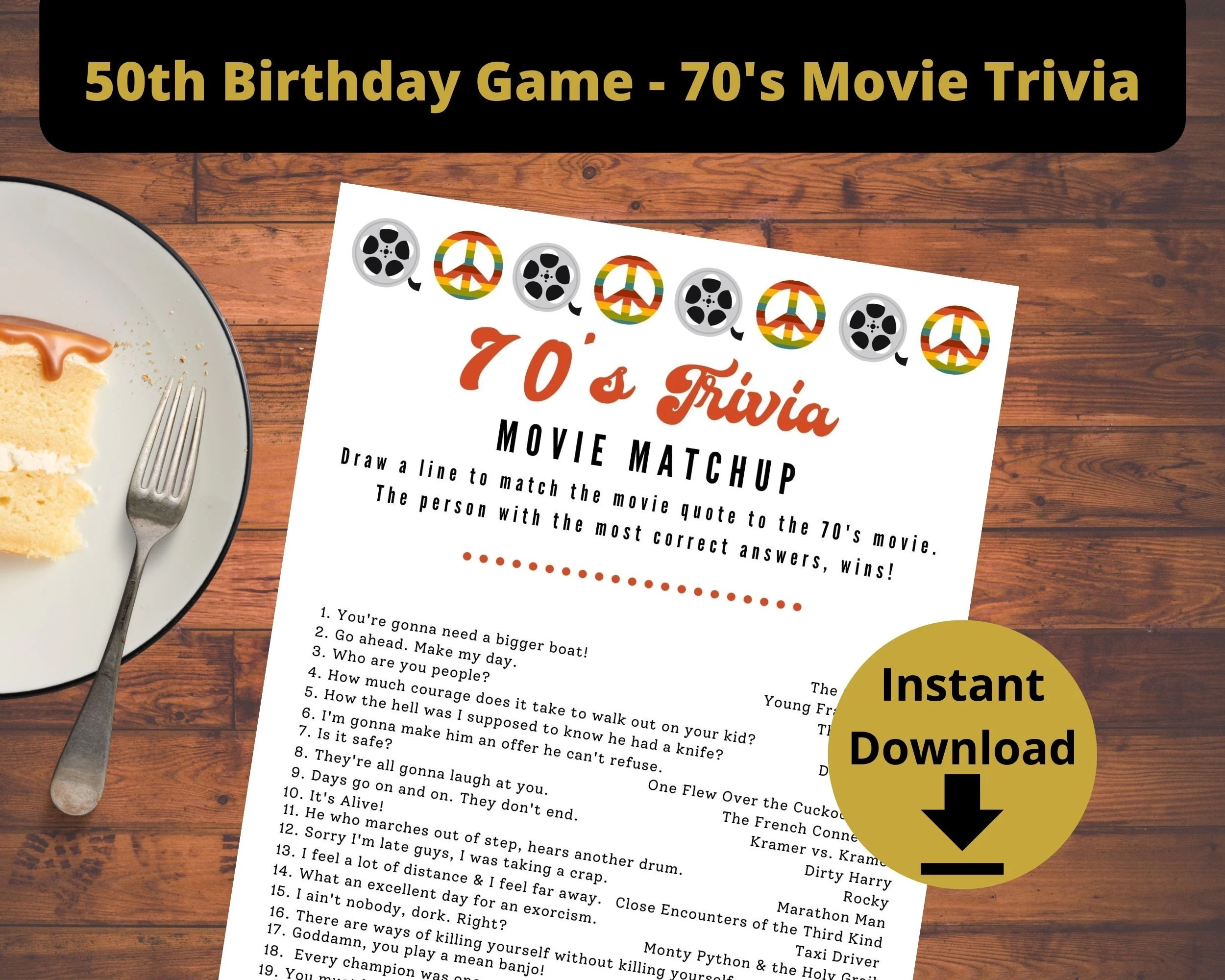 50th Birthday Party Game 70 s Movie Quotes Trivia Game Movie Trivia Games From 1970 s Etsy