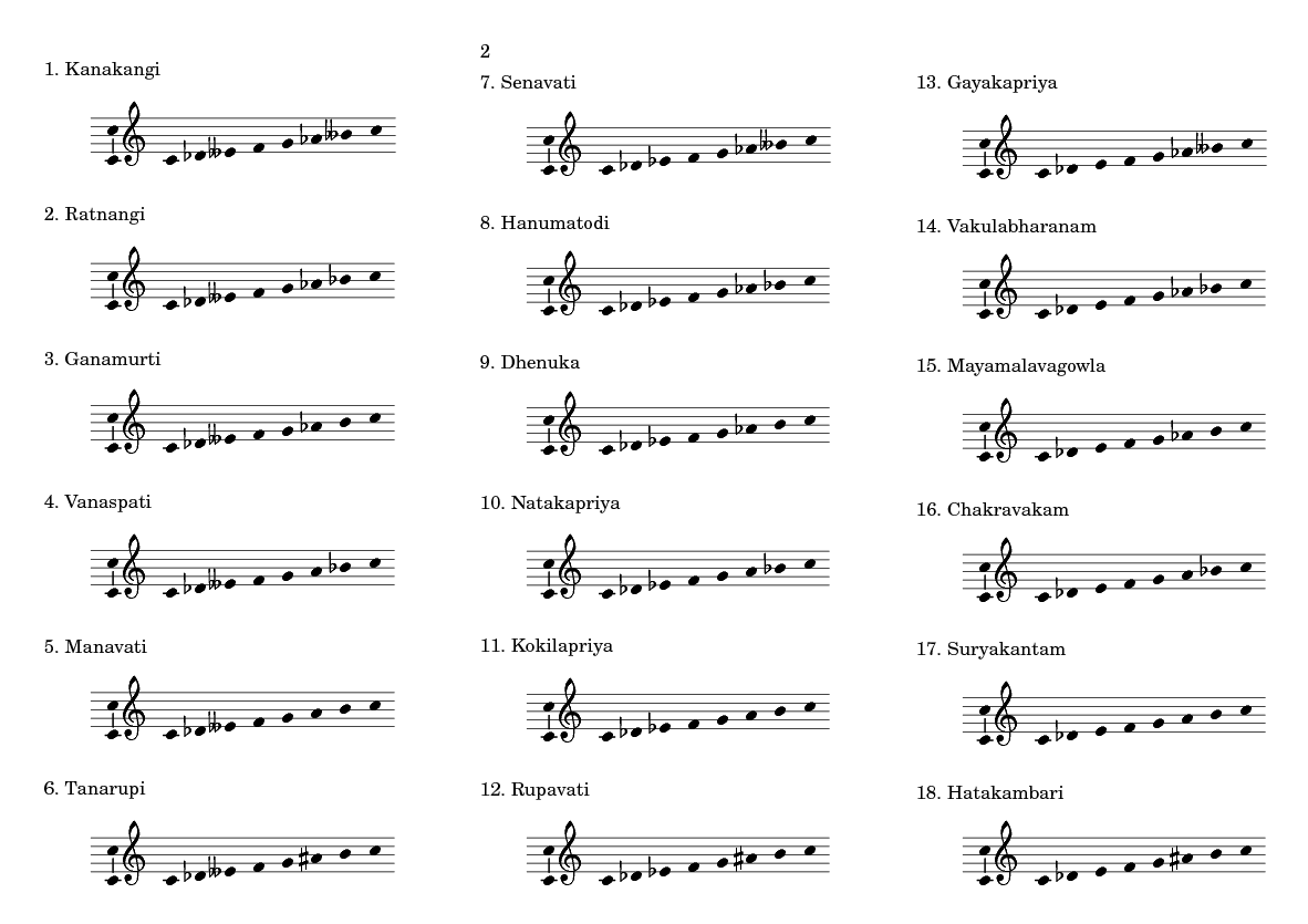 Carnatic Mela Ragas Chart