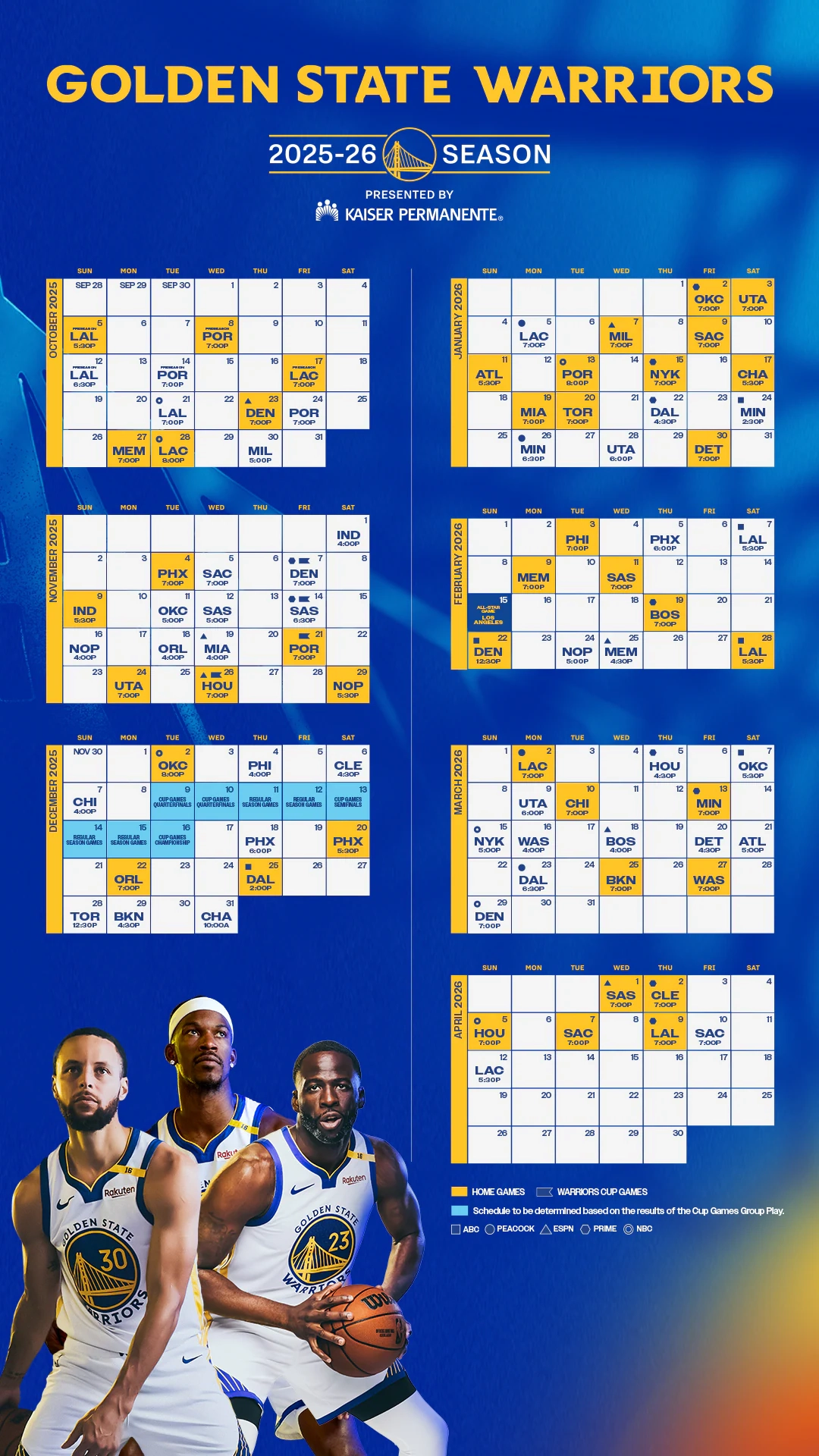 Printable Schedule For Warriors 2026