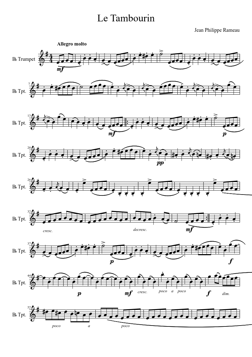 Le Tambourin Sheet Music For Trumpet Other Solo MuseScore