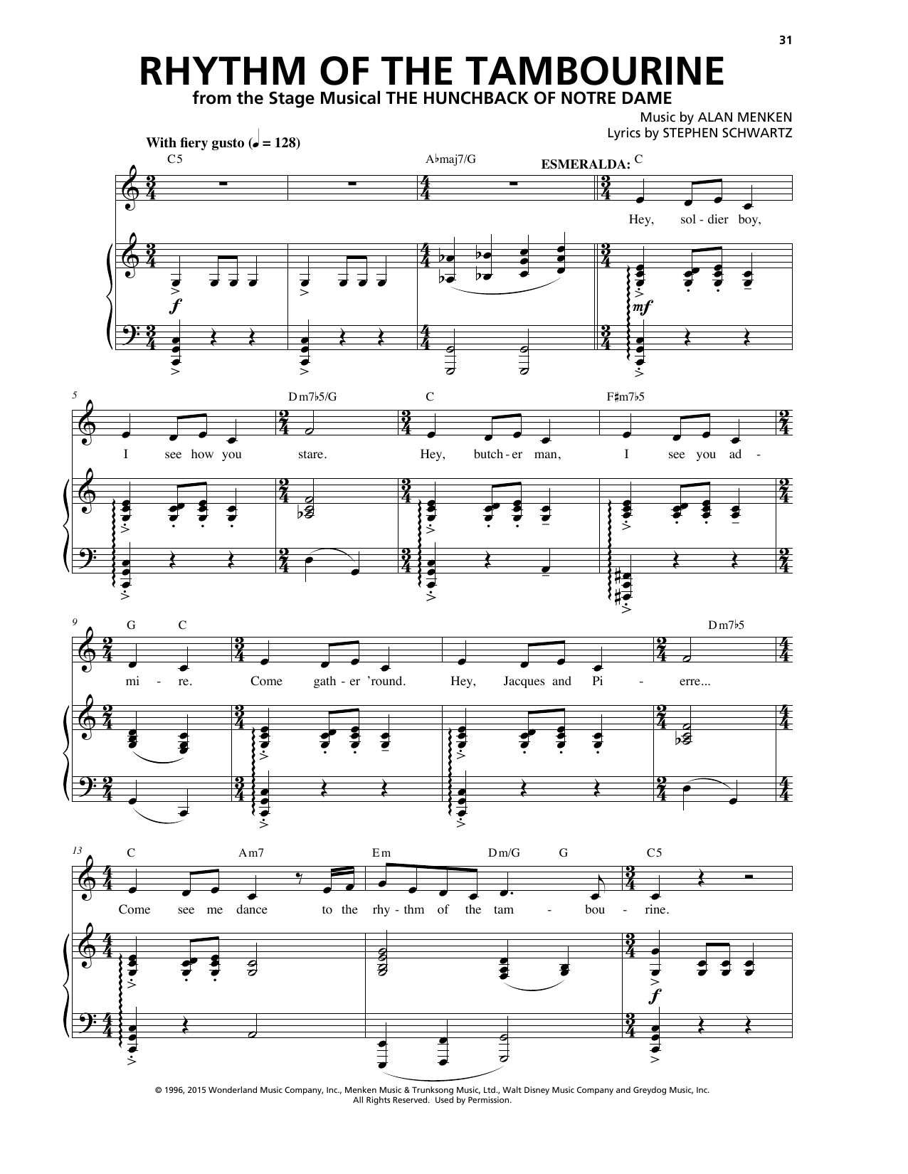 Rhythm Of The Tambourine from The Hunchback Of Notre Dame A New Musical By Alan Menken Stephen Schwartz Sheet Music For Piano Vocal At Sheet Music Direct