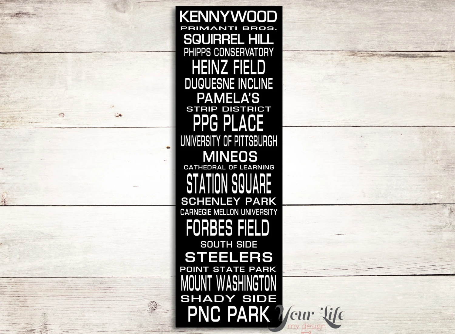 From iconic street names like Penn Avenue and Smallman Street to classic Pittsburgh phrases and landmarks, these signs capture the essence of the Strip District in a fun and nostalgic way. They make a great conversation starter for visitors and a special touch for locals.