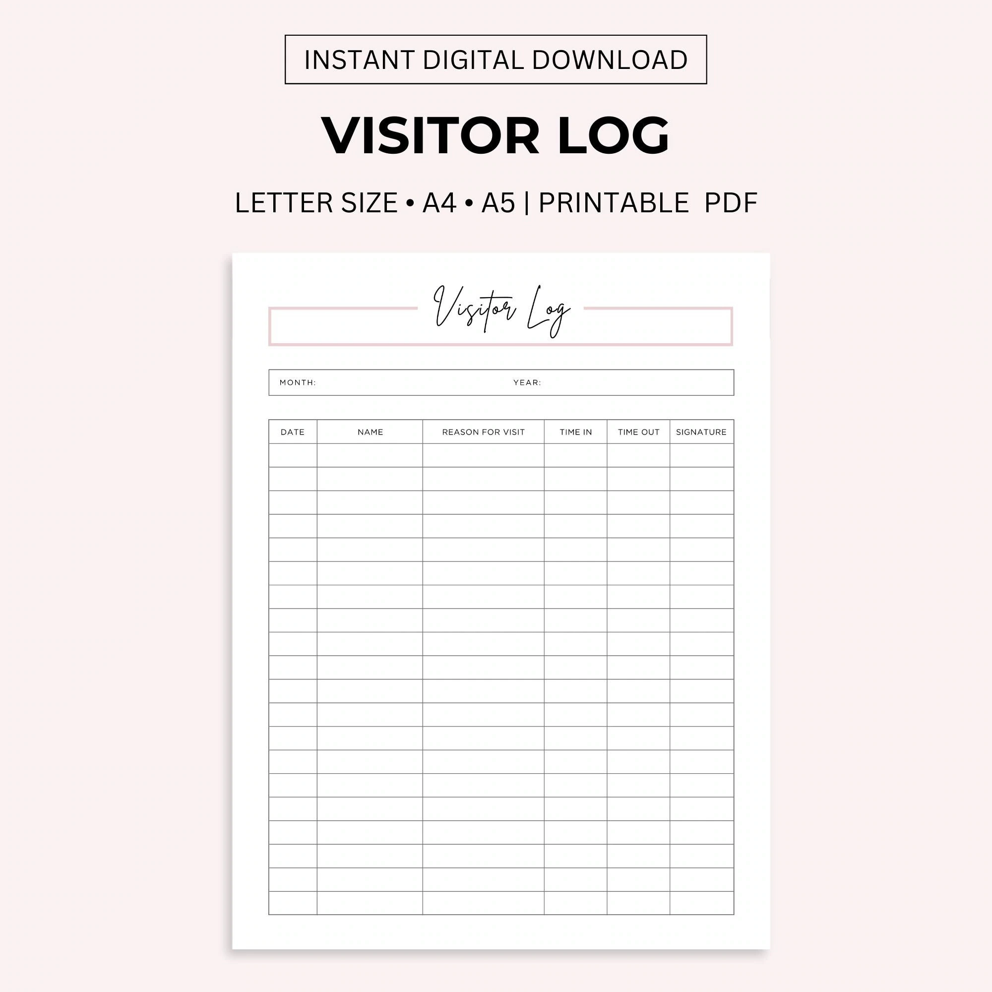 Printable Visitor Log Sheet