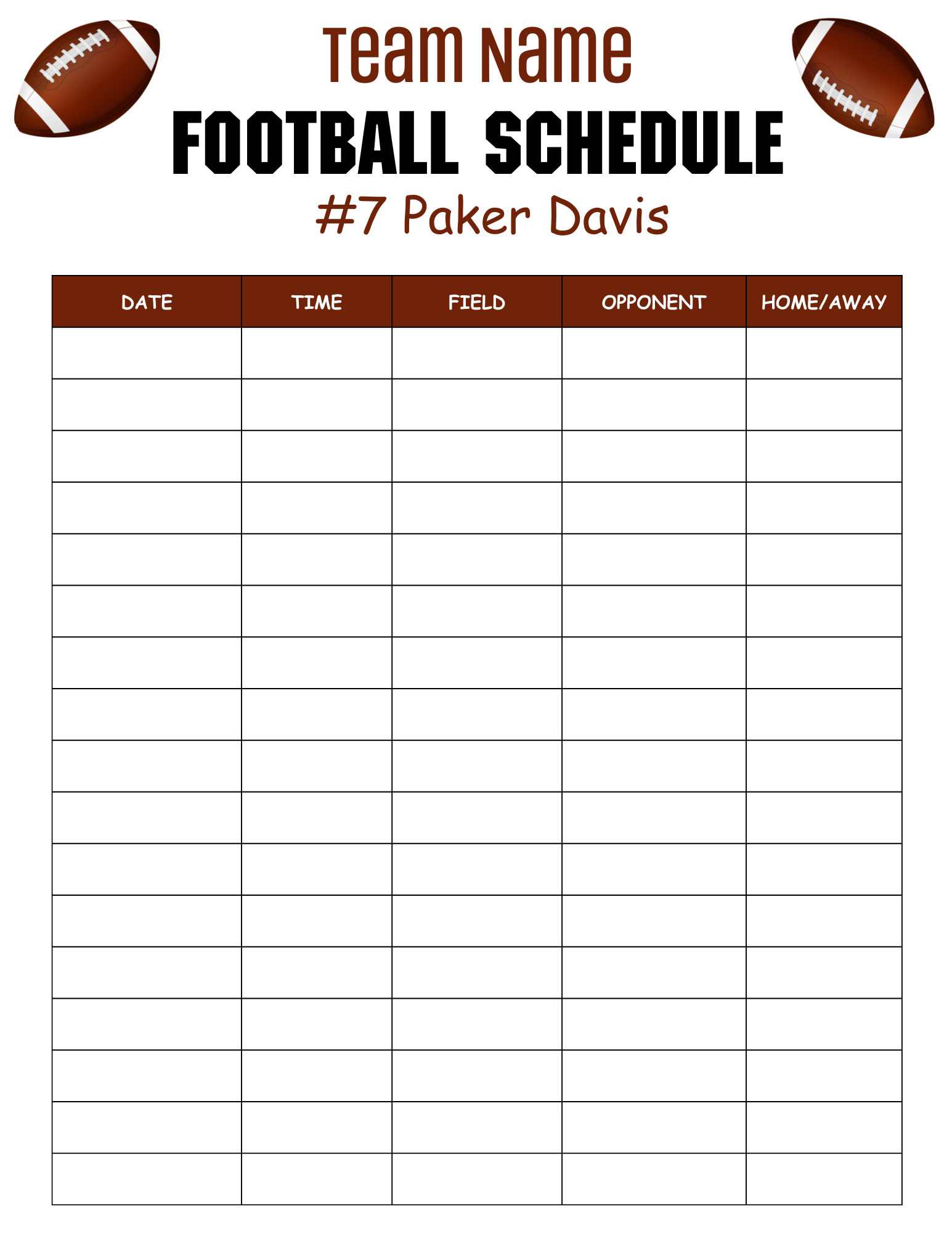 Editable Football Practice Schedule Template Pdf Instant Download