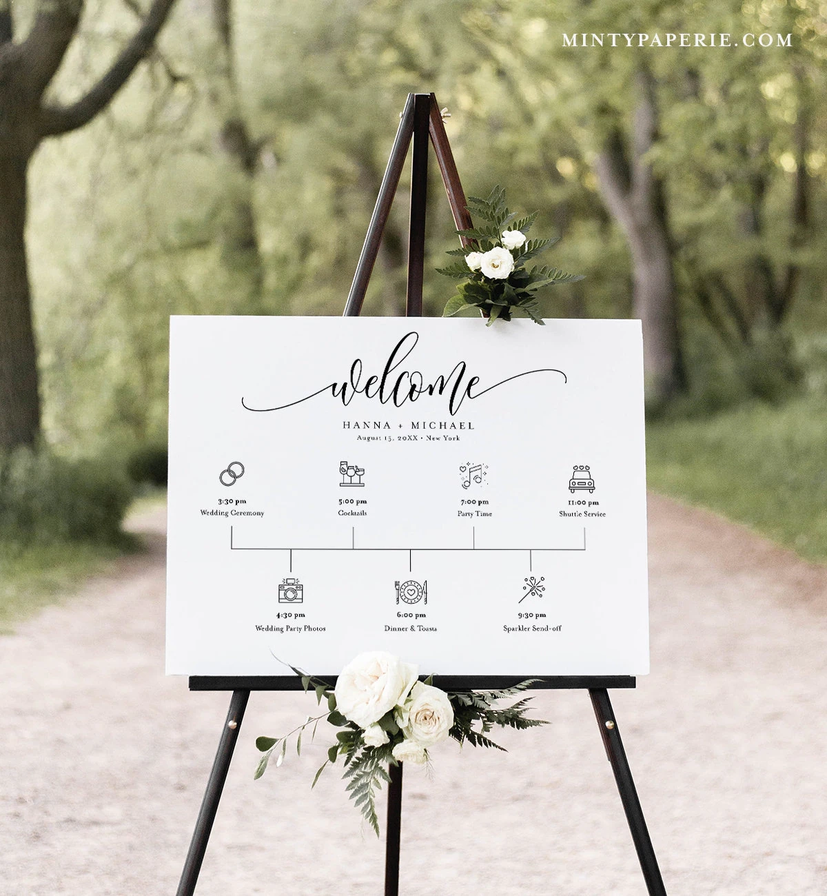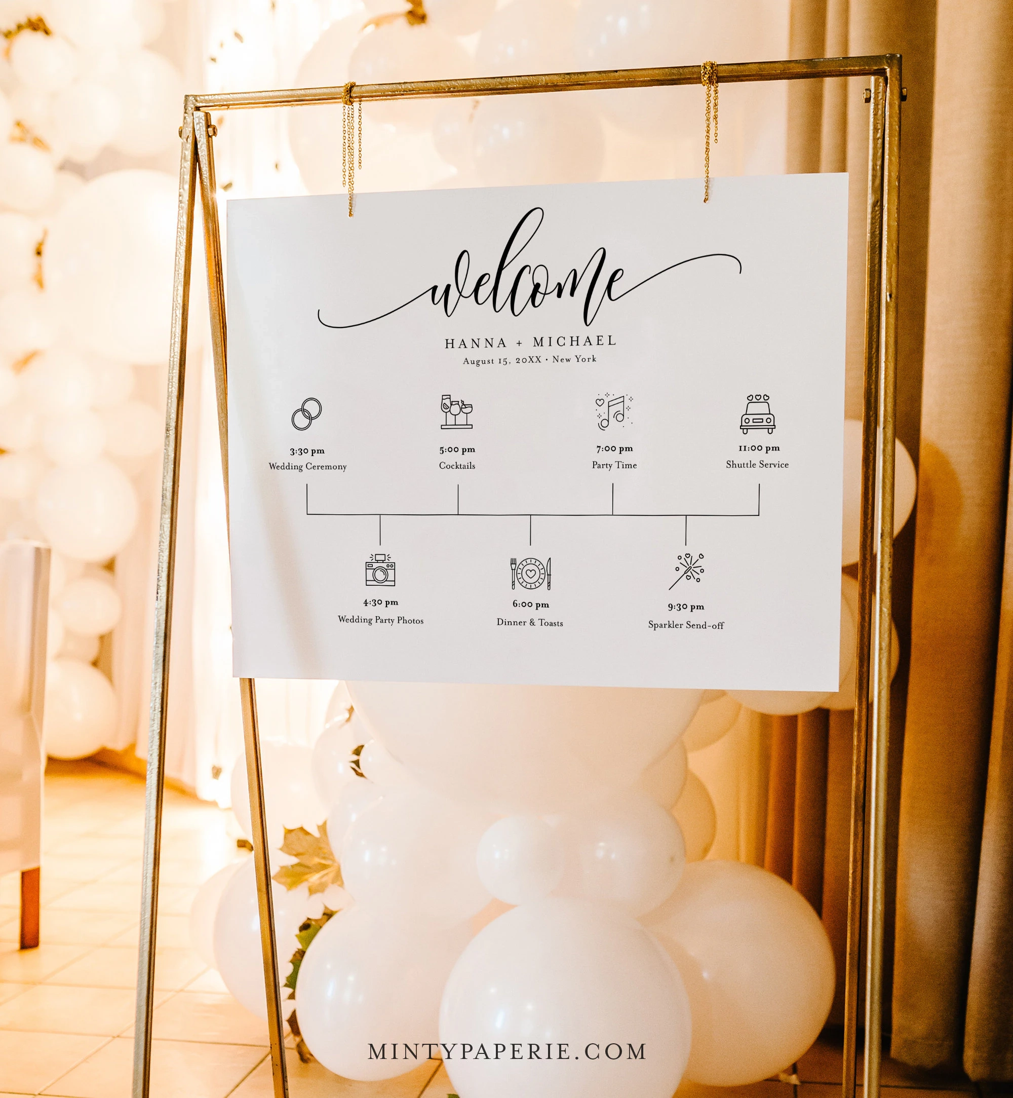 Minimalist Welcome Sign Template Printable Wedding Day Timeline With Icons Order Of Events Instant Download 100 Editable 008 247LS