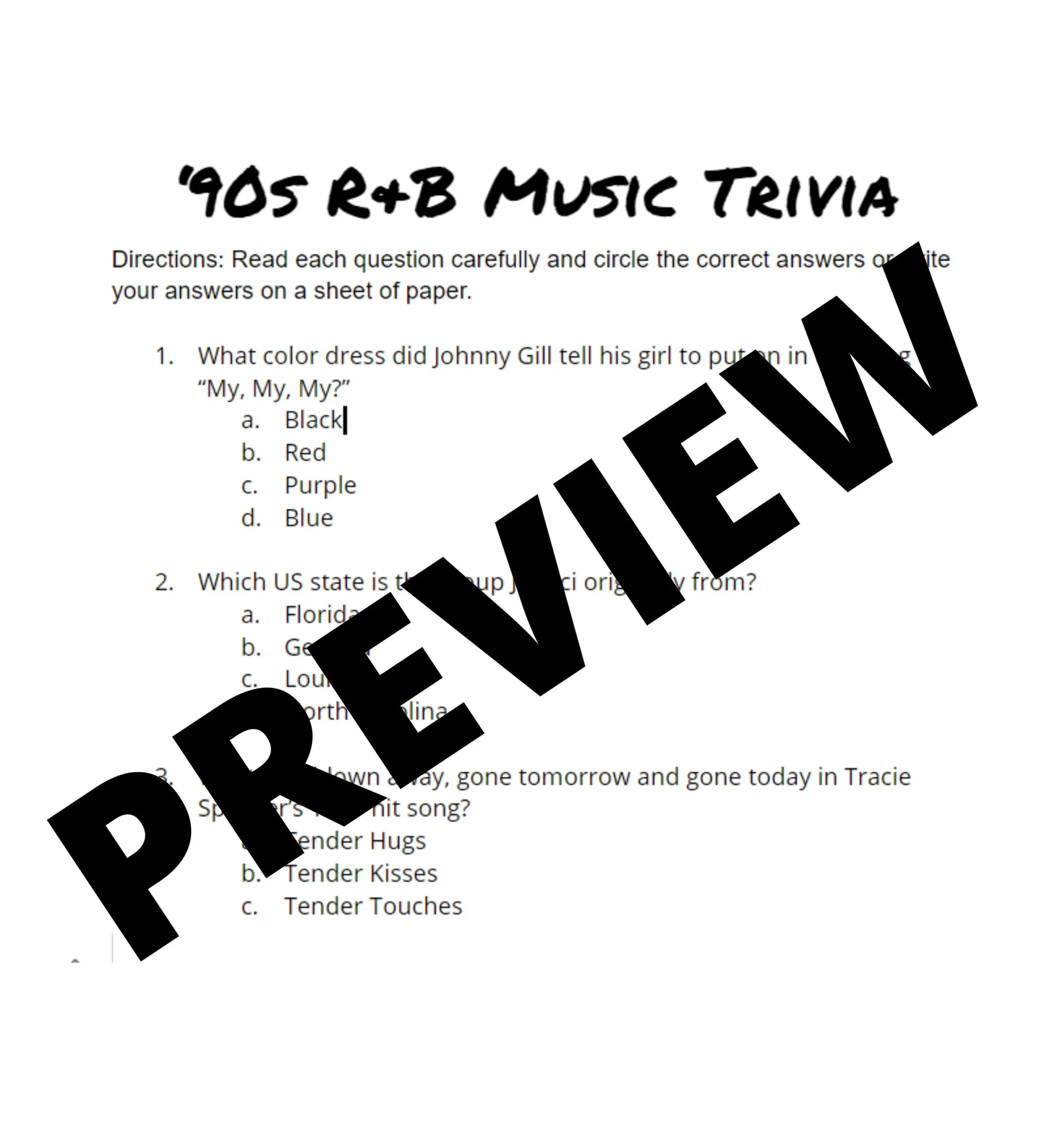 90s R B Trivia Game Printable 101 Question Quiz Book Multiple Choice Music Quiz Instant Download Black Music Party Game Etsy Singapore