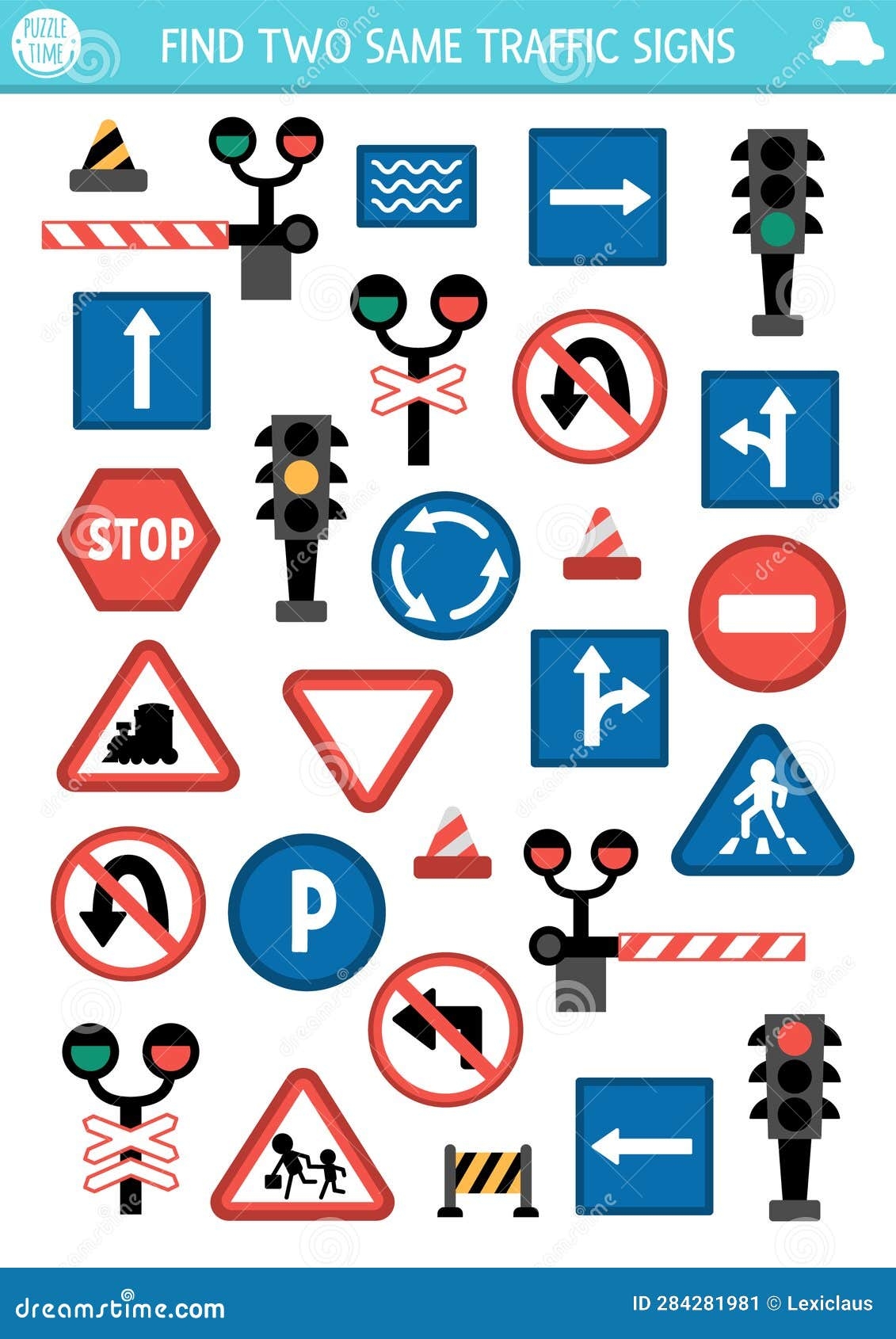 Find Two Same Road Signs Transportation Matching Activity For Worksheets Library