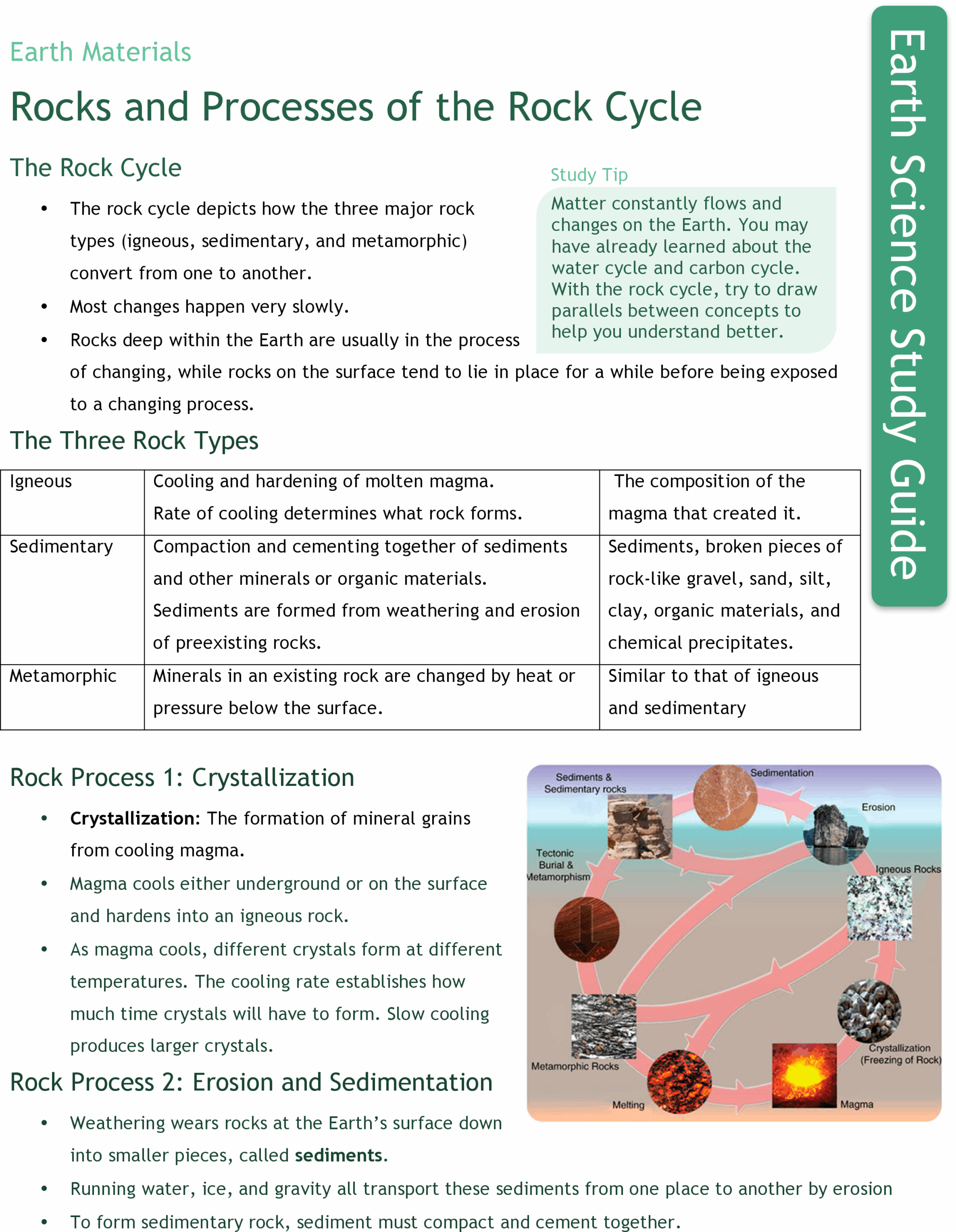 From the formation of igneous rocks through volcanic activity to the erosion and sedimentation that create sedimentary rocks, this study guide covers it all. You’ll learn how heat and pressure can transform rocks into metamorphic forms and how these processes are interconnected in the rock cycle.