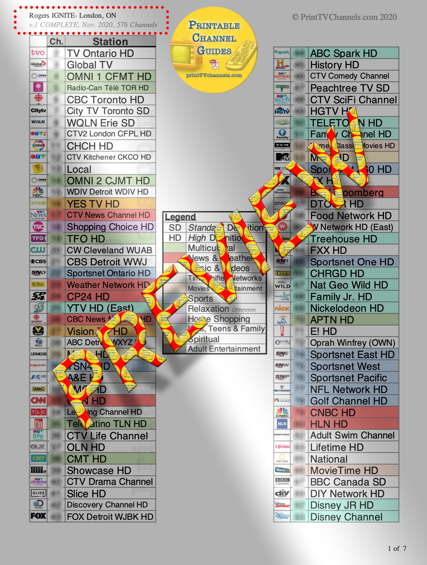 IGNITE TV Channels LONDON ON Complete Printable TV Channel Guides
