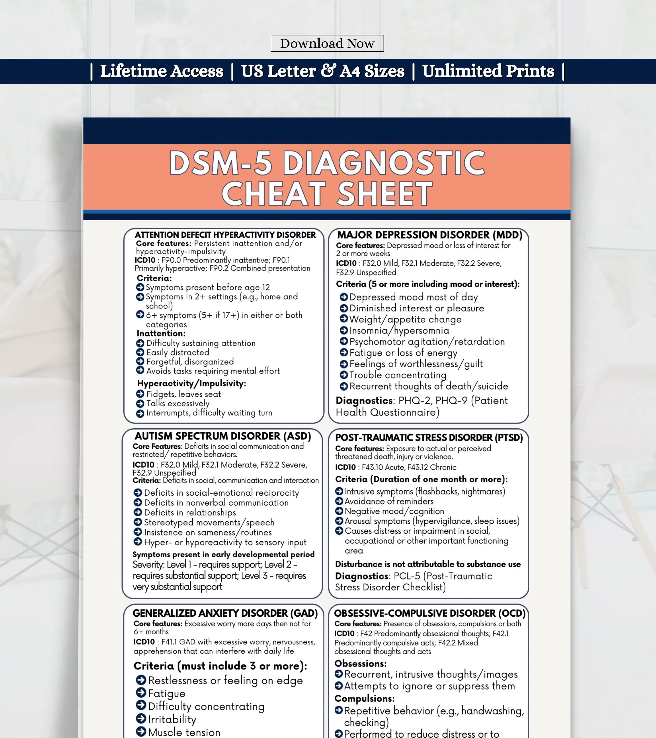 DSM5 Diagnostic Cheat Sheet DSM 5 Diagnosis Criteria Reference Therapist Quick Guide Mental Health Cheat Sheet Psychiatry Notes Etsy