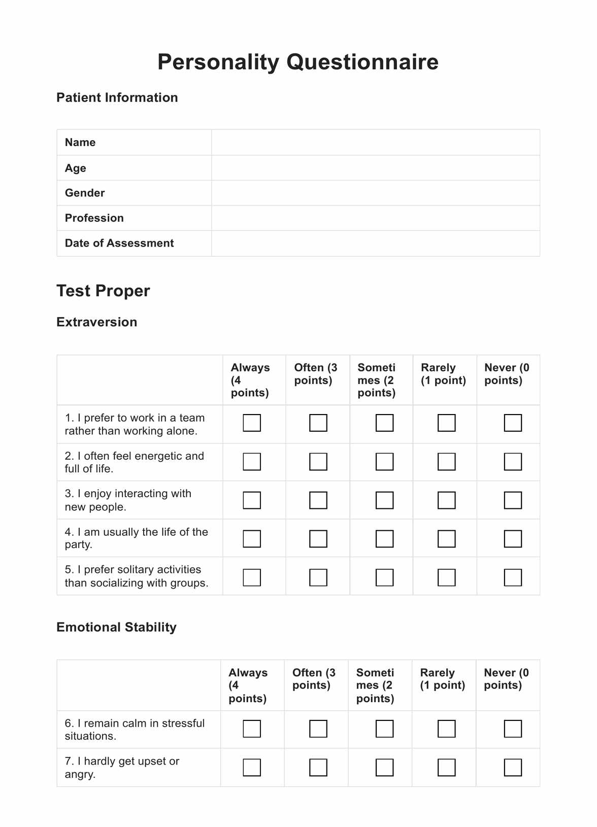 Personality Questionnaire