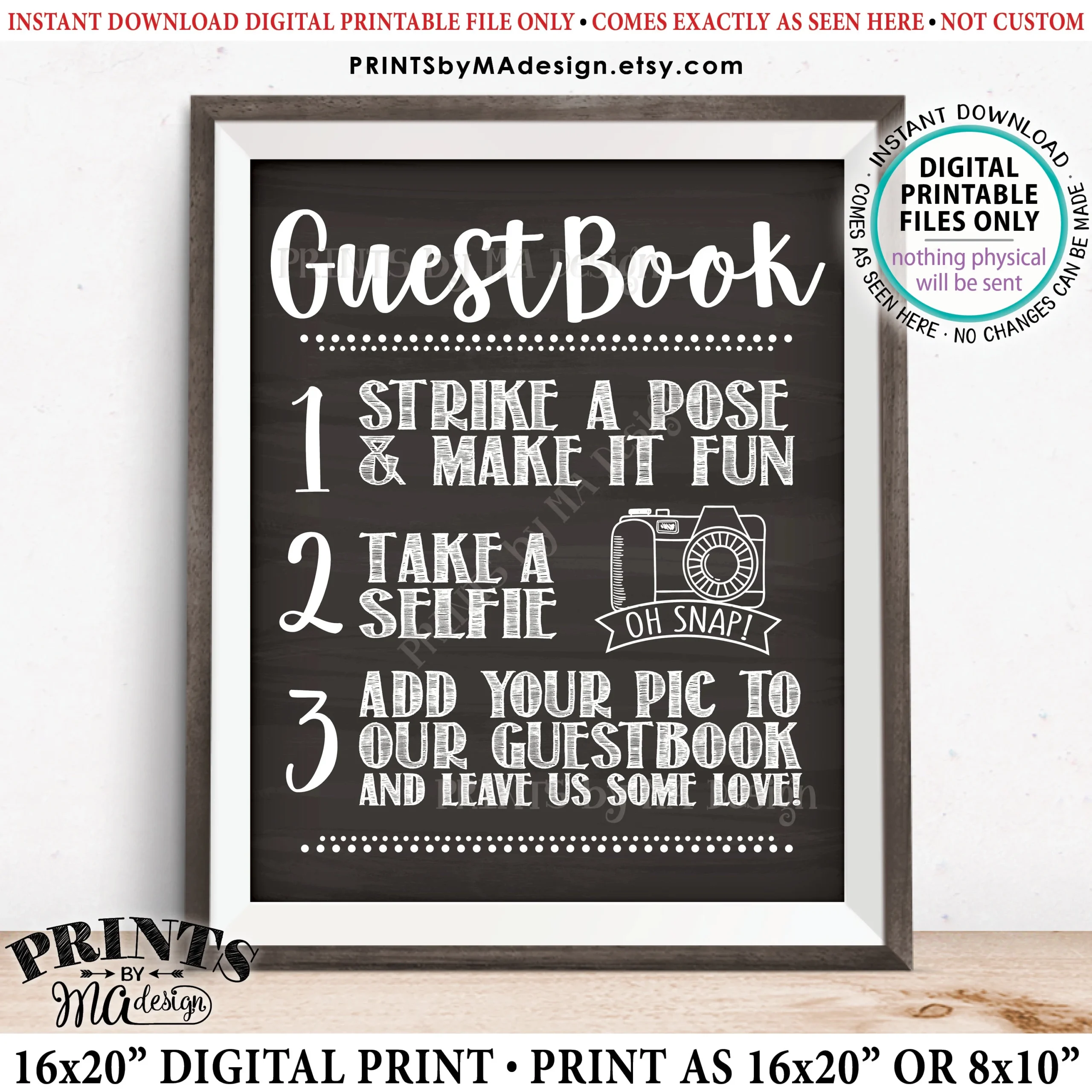 Guestbook Photo Sign Selfie Sign Wedding Guest Book Photo Wedding Sign Share Photos PRINTABLE 8×10 16×20 Chalkboard Style Sign