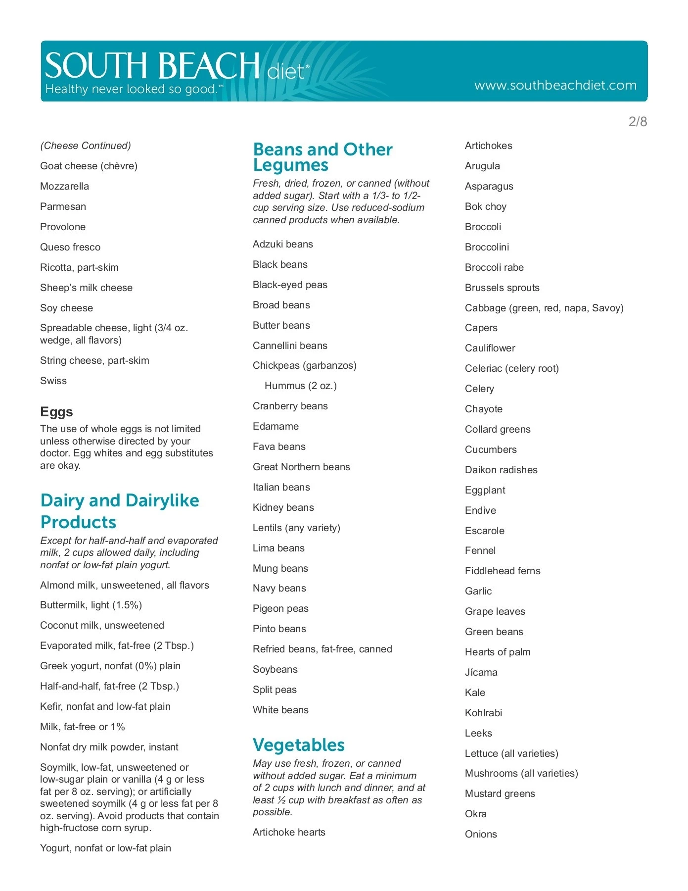 South Beach Diet Food List Printable