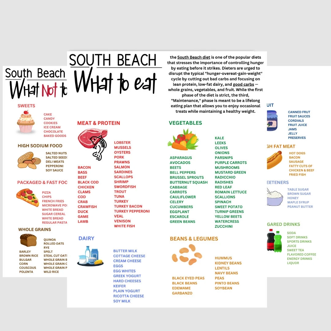 South Beach Diet Food List And Diet Guide Patient Education Information Food Grocery List 1 Pdf W Link To Canva 3 Jpgs 3 Pdfs Etsy
