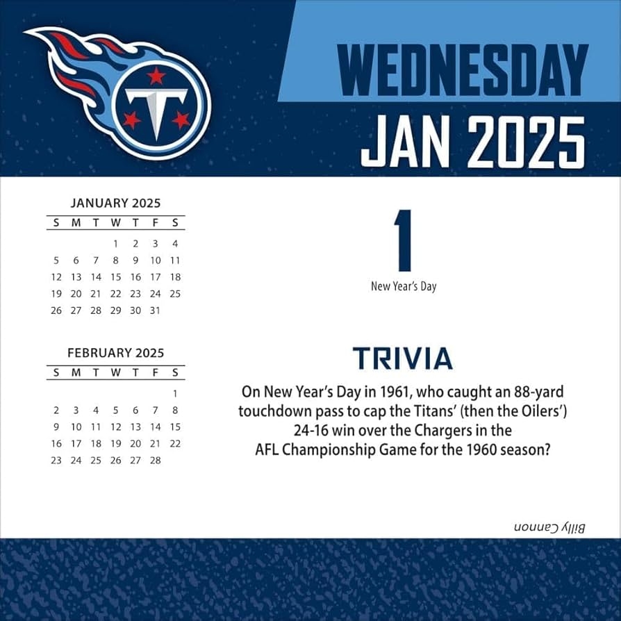 Amazon Turner Sports Tennessee Titans 2025 Box Calendar 25998053117 Office Products