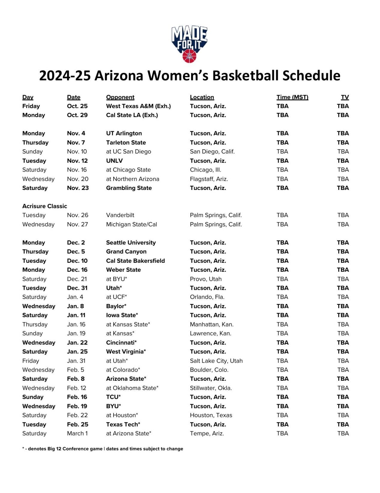 Arizona Basketball Releases 2024 Men And Women s Schedule News Kvoa