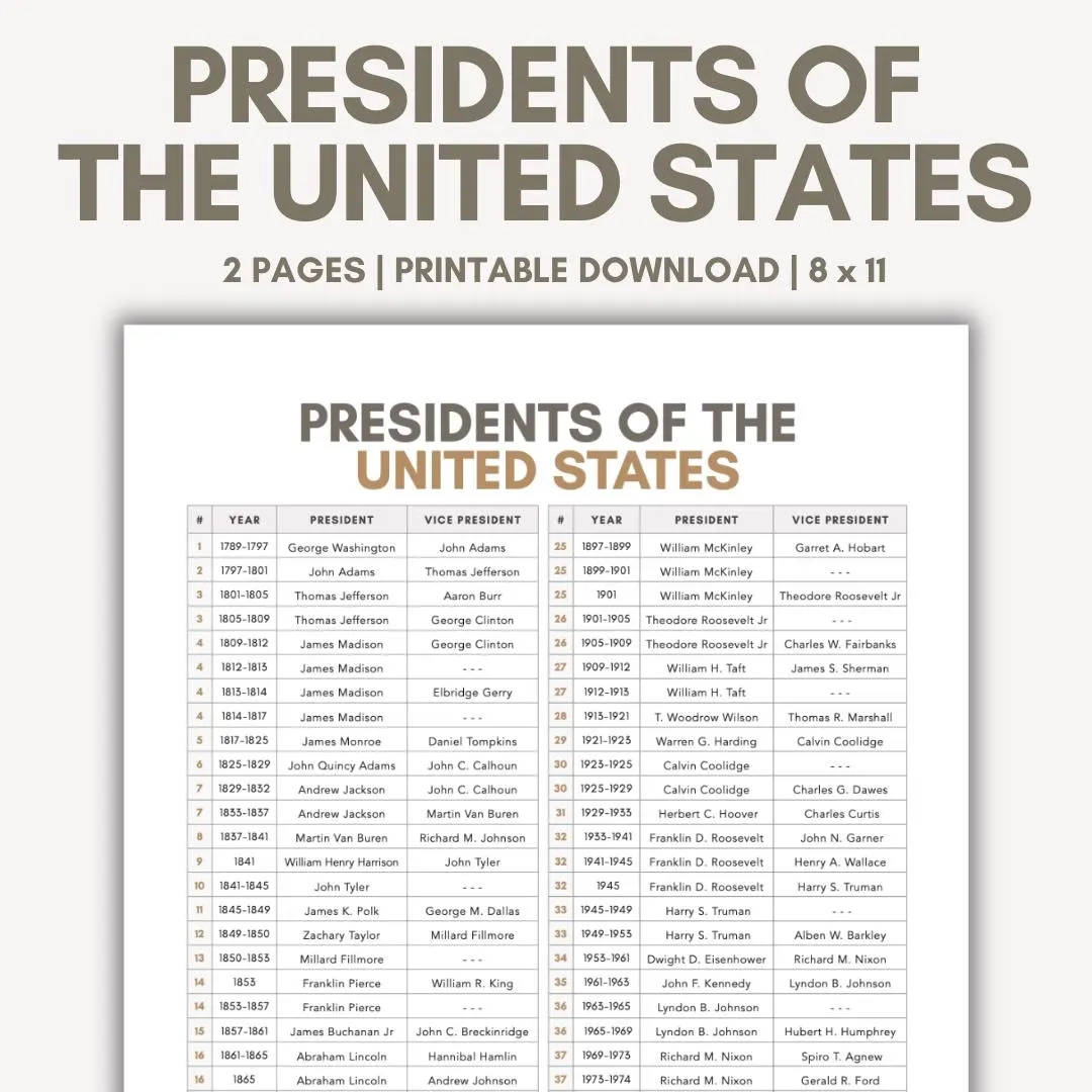Explore the rich tapestry of American presidential history with our comprehensive and user-friendly printable list of US Presidents by year. Download your copy today and dive into the stories of the men who have led the United States throughout its history.