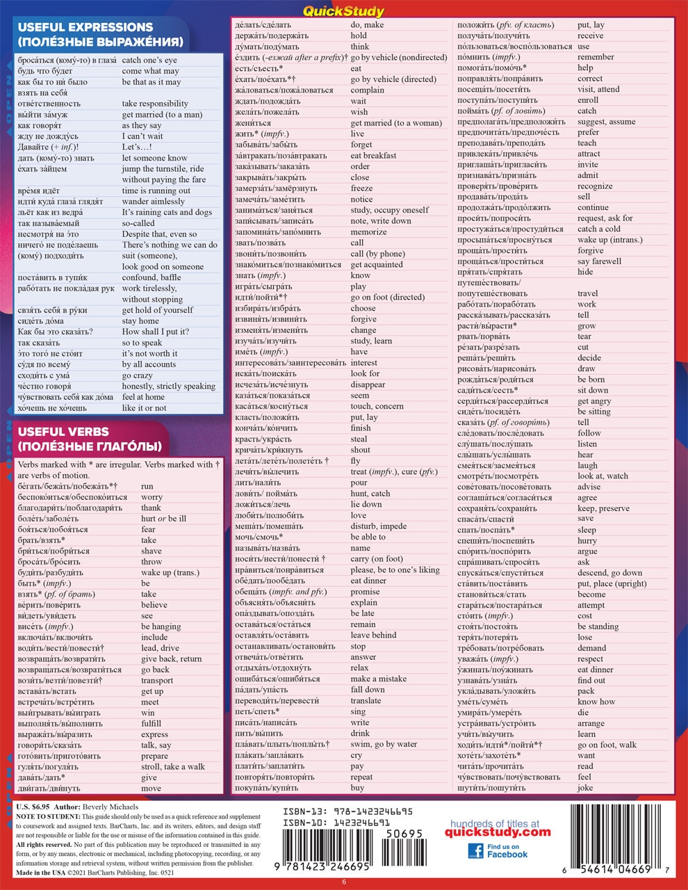 QuickStudy Russian Verbs Laminated Study Guide 9781423246695