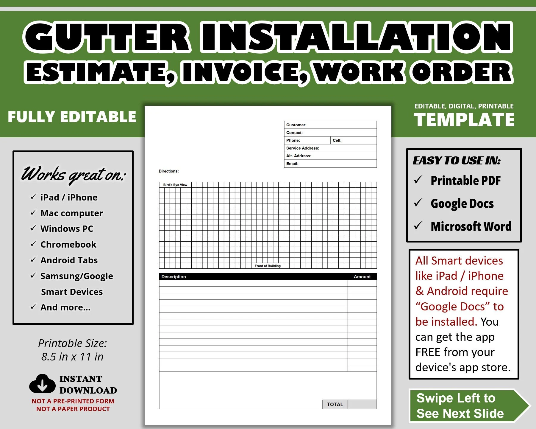 Rain Gutter Installation Company Estimate Invoice Work Order Printable Editable Estimate Word Processing Template Etsy