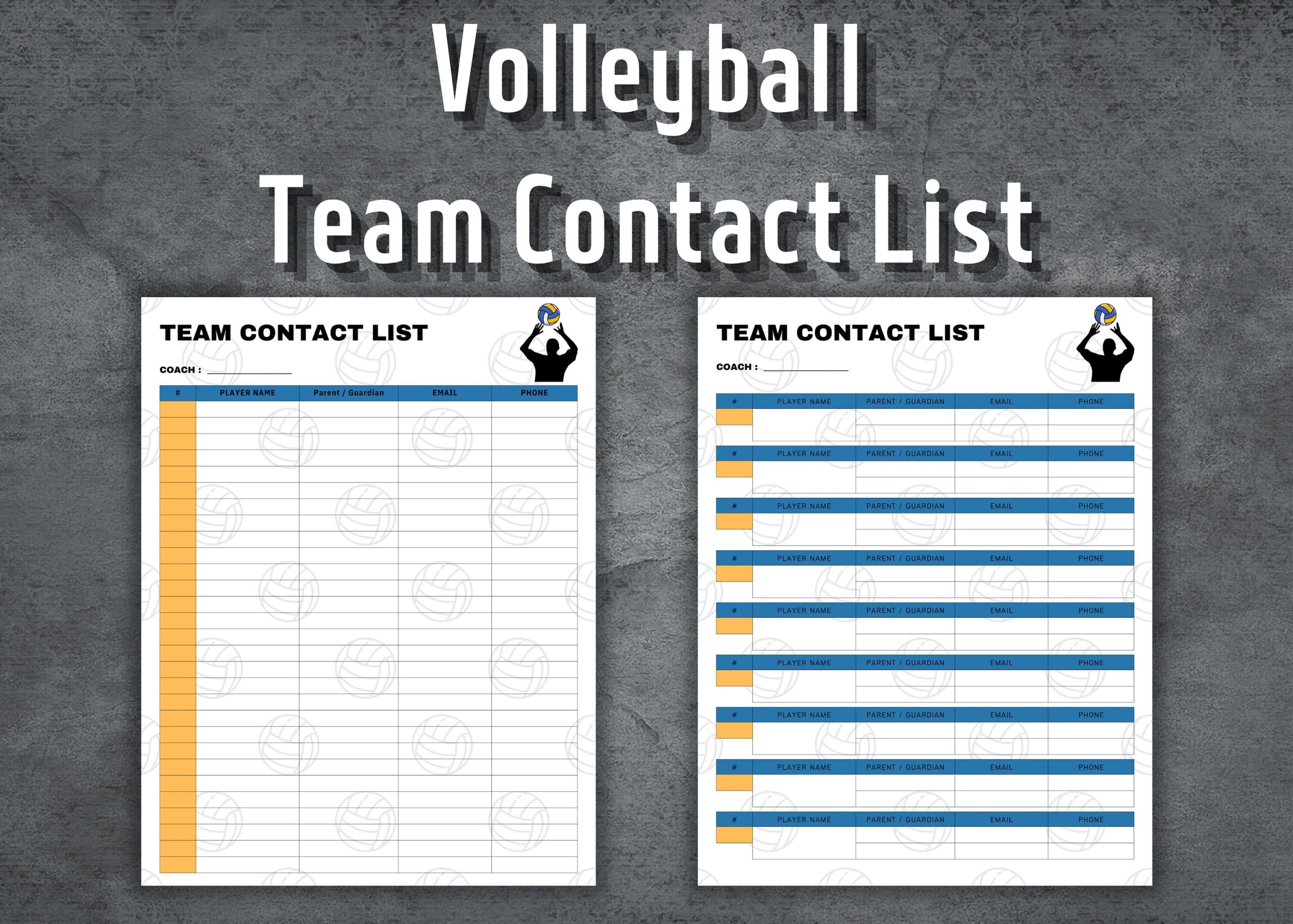 Volleyball Team Contact List Information Sheet Printable Contact Sheet Address Book Contact List Tracker Instant Download Etsy